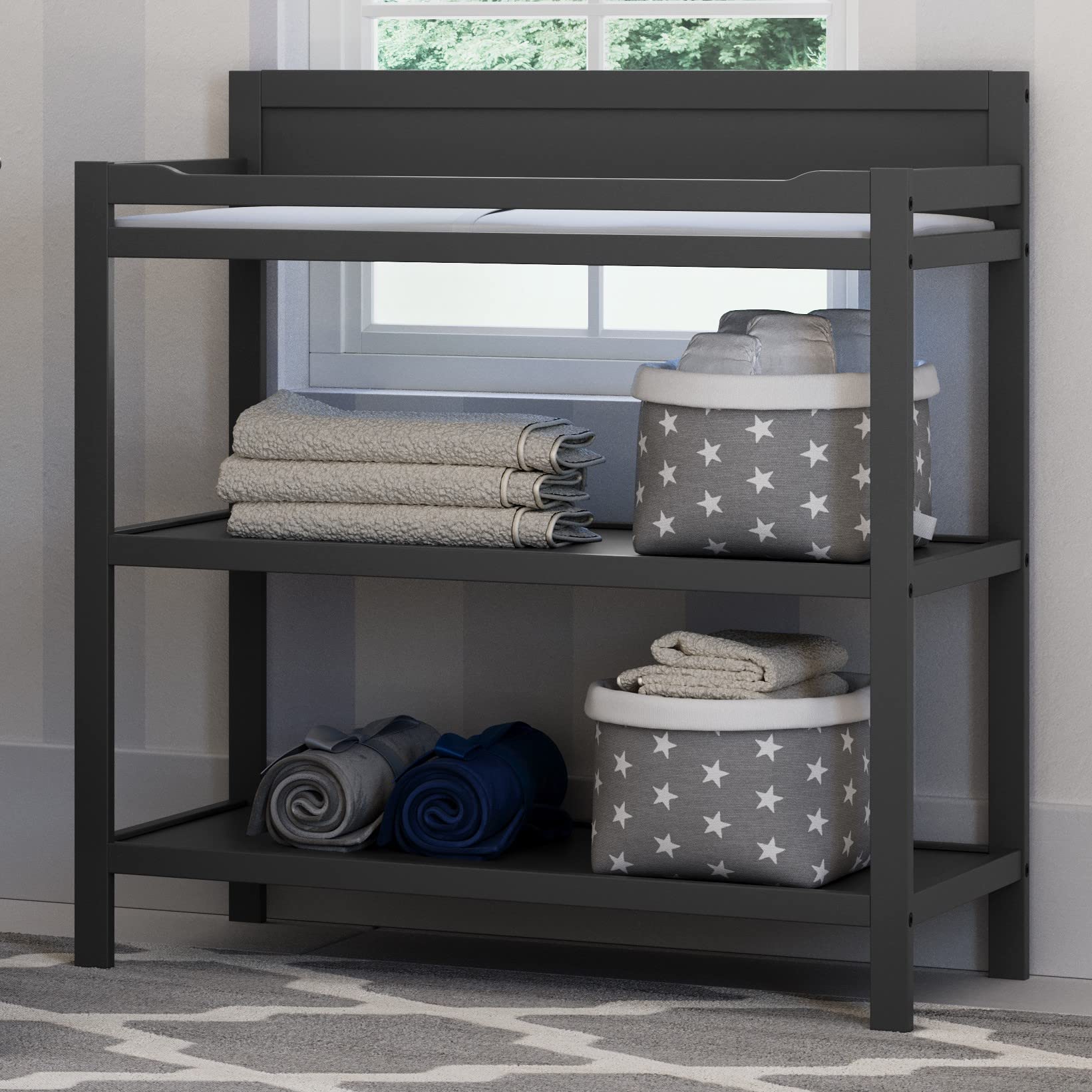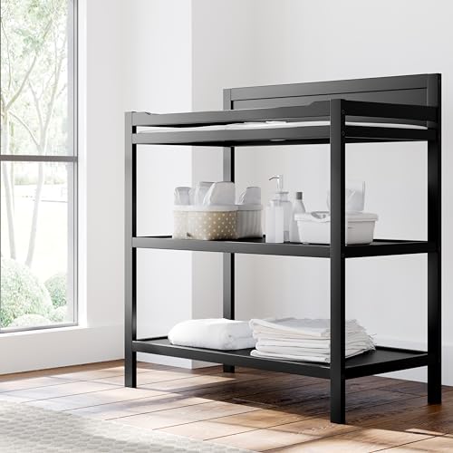 Storkcraft Alpine Changing Table (Black) – GREENGUARD Gold Certified Nursery Changing Table, Includes Water-Resistant Changing Pad, 2 Shelves for Nursery Storage and Organizing
