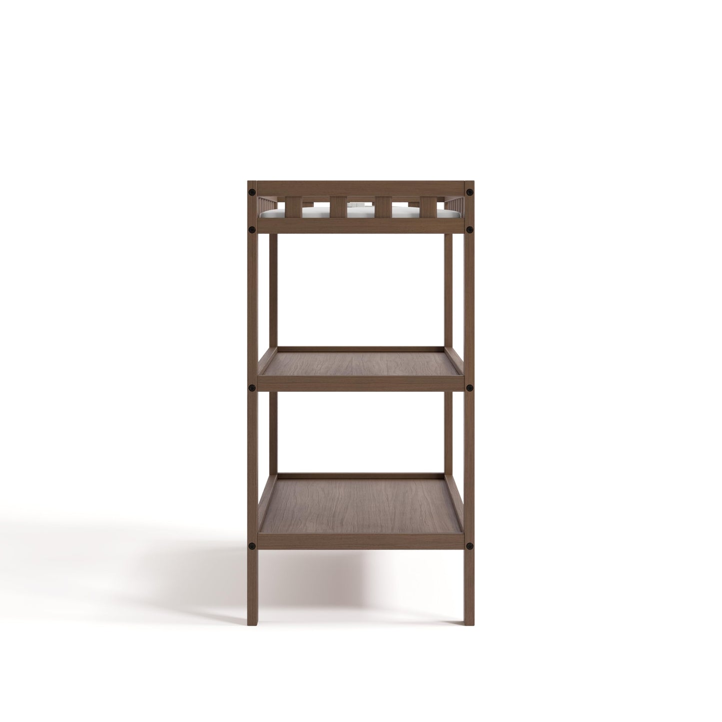 Stylish and simple. Elegant and minimalist. Introducing the timeless, easy-to-match, and easy-to-assemble Storkcraft Morningside Changing Table — a quality crafted baby changing table from Storkcraft, North America’s longest-standing name in baby cribs (since 1945). The Morningside is crafted of solid New Zealand pine wood and wood composites, and is GREENGUARD Gold Certified — Furniture with GREENGUARD Gold certification has been screened for over 10,000 chemicals and volatile organic compounds (VOCs) and meets or exceeds strict chemical safety standards. In addition, the Morningside is certified by the Juvenile Products Manufacturers Association (JPMA) — JPMA Certified products are expert tested by third-party, accredited laboratories to meet or exceed all applicable category voluntary and mandatory safety standards. The Morningside’s applied finish is tested to meet or exceed applicable ASTM and CPSIA safety standards. Designed to provide you with a convenient and secure place to change your baby's diaper, the Storkcraft Morningside Changing Table includes a waterproof diaper changing pad, "click shut" safety strap, and two (2) open shelves for additional nursery storage. Storkcraft has been recognized with industry awards from the likes of Fast Company, Parents, Baby Innovation Awards, and more, and is the proud recipient of the Parent Tested Parent Approved (PTPA) Seal of Approval for nursery and children’s bedroom furniture. The Morningside is backed by Storkcraft’s supportive, real-life Customer Care team and 1-year limited manufacturer’s warranty. Easy, 30-minute (or less) assembly required (two people recommended for assembly). Waterproof baby changing pad included. Complete Storkcraft’s Morningside Collection with the matching Storkcraft Morningside 5-in-1 Convertible Crib.