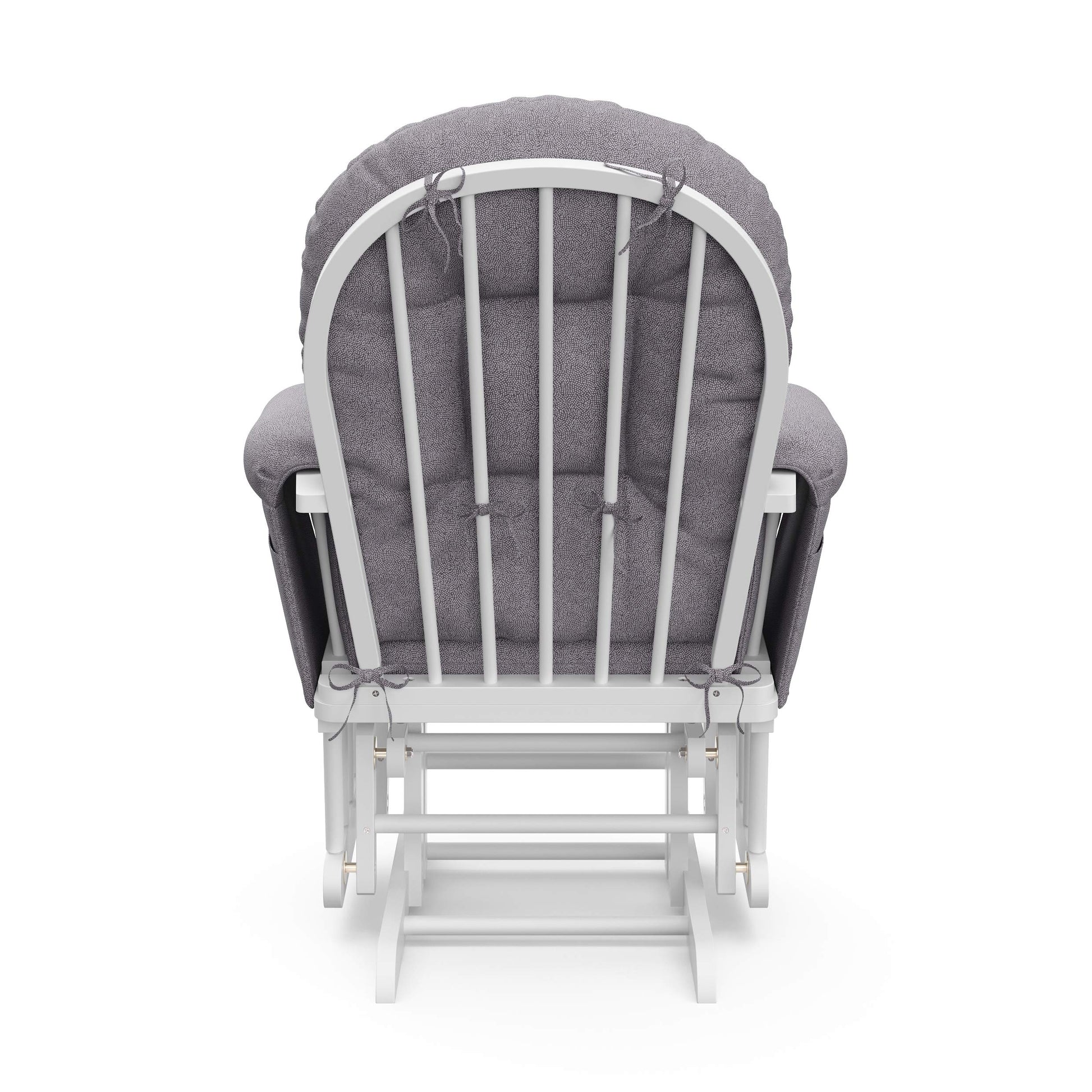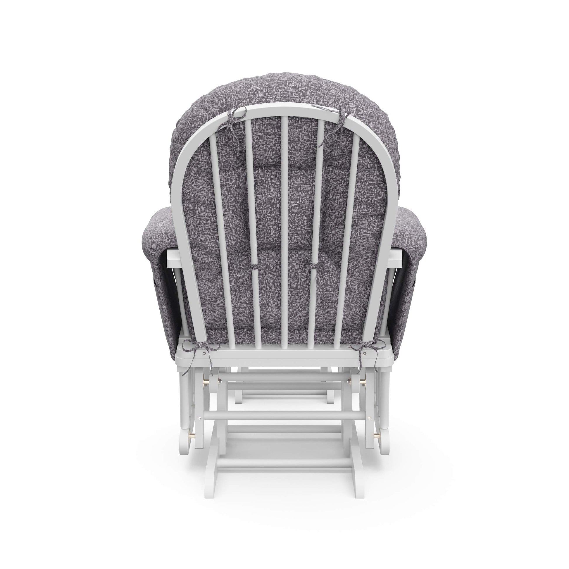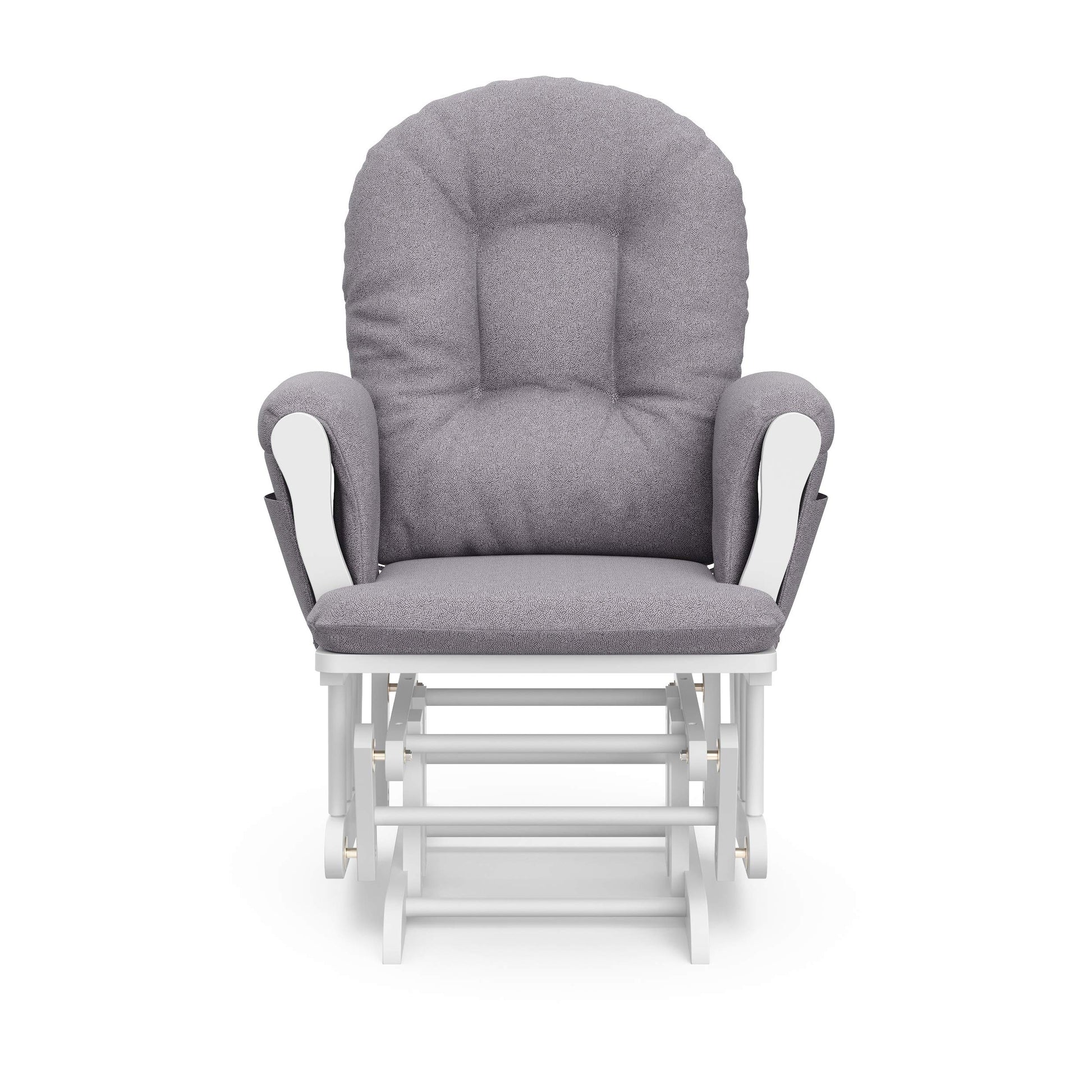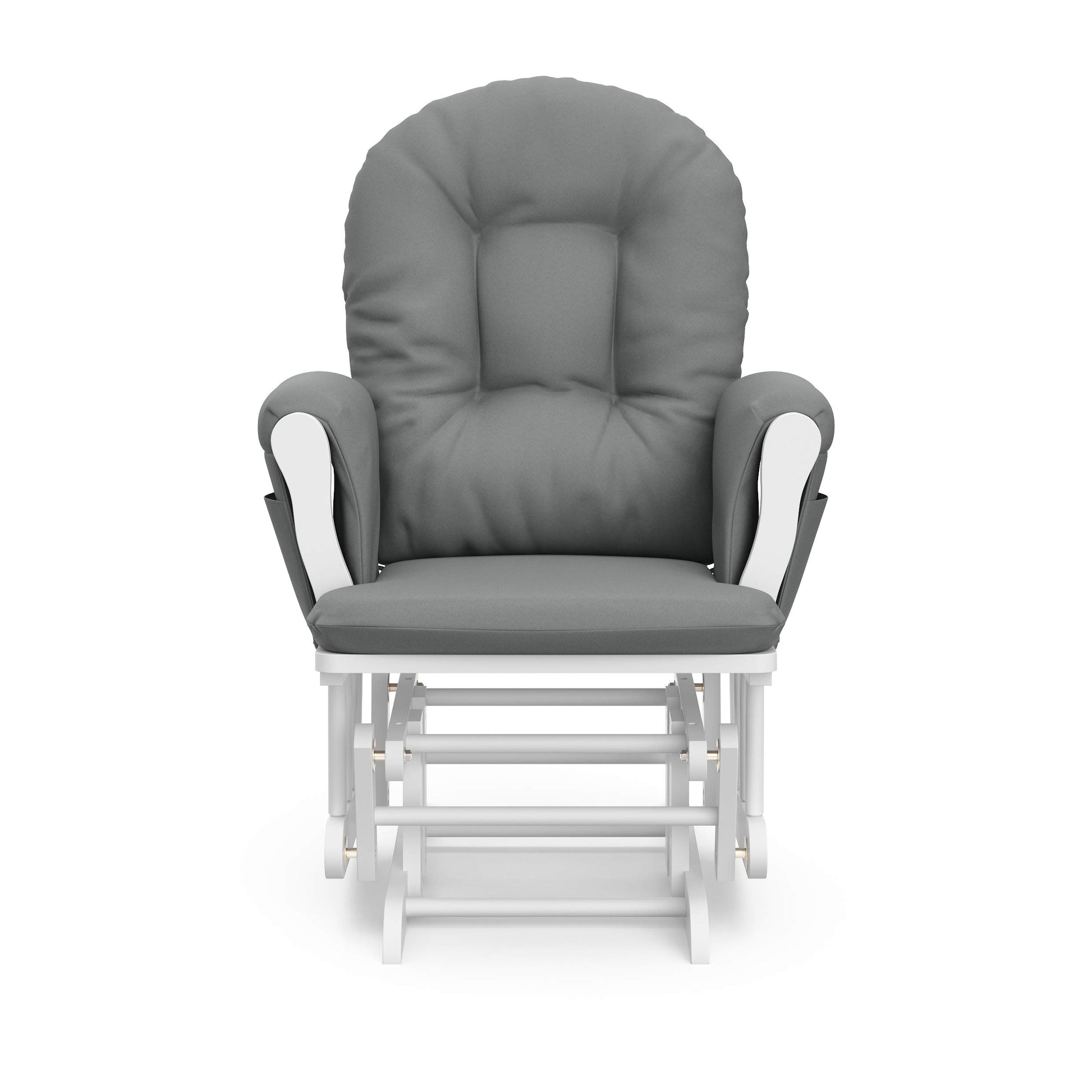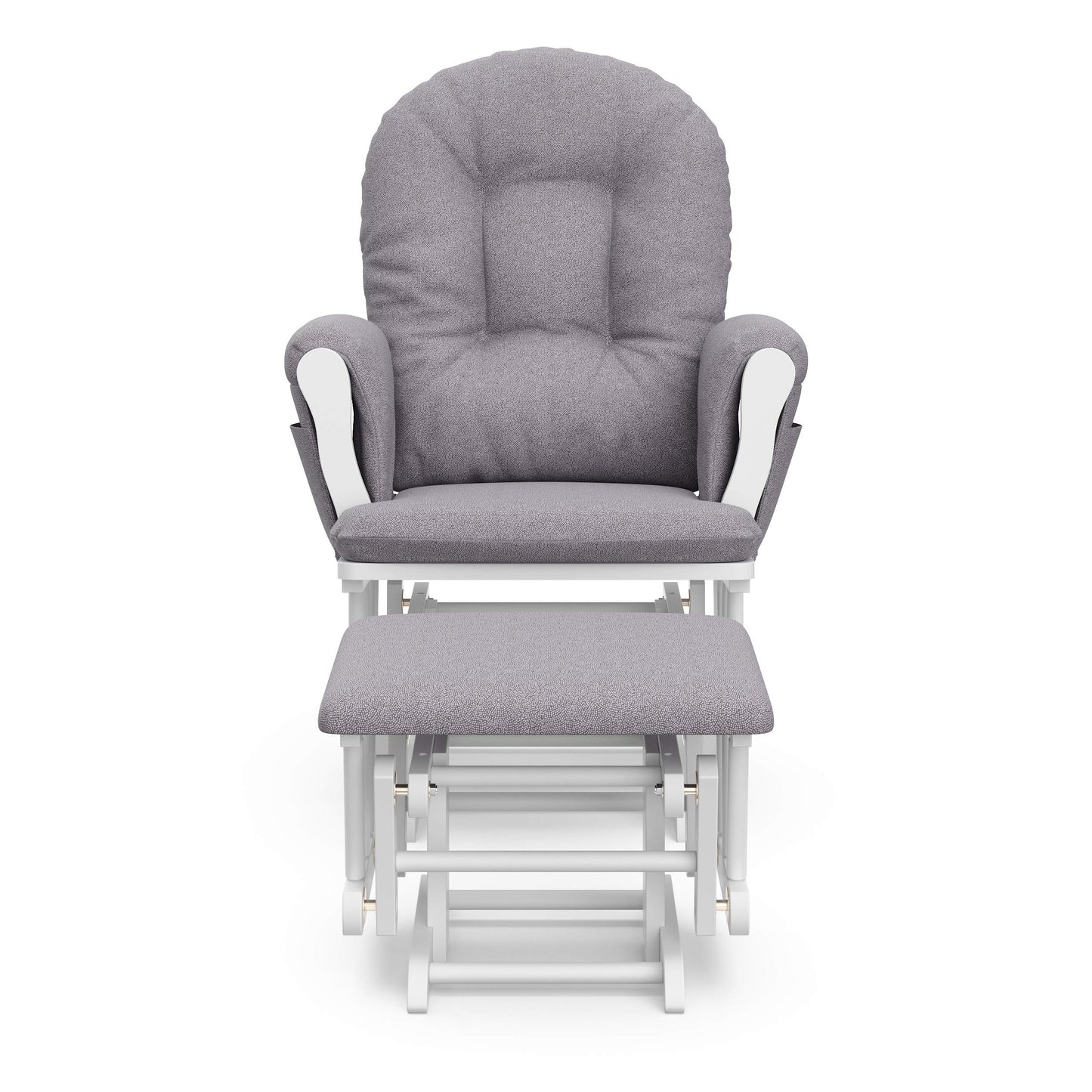 - PREMIUM COMFORT: The Storkcraft Hoop Glider and Ottoman offers you generous seating room, comfortable padded arm cushions with convenient storage pockets, and enclosed metal ball bearings for a smooth gliding motion to gently rock you and your little one to relaxation
