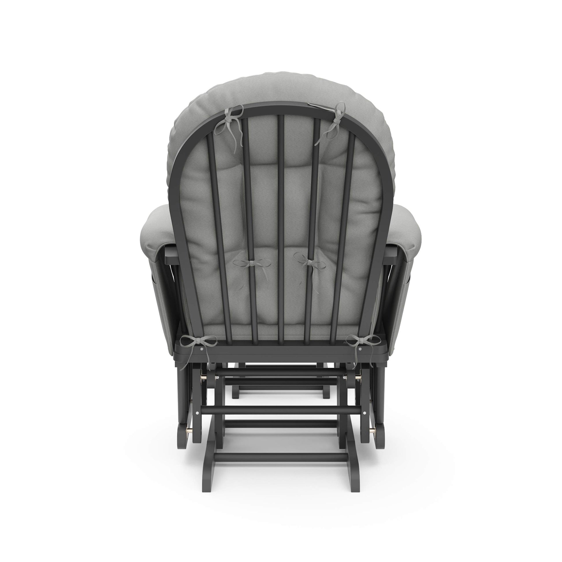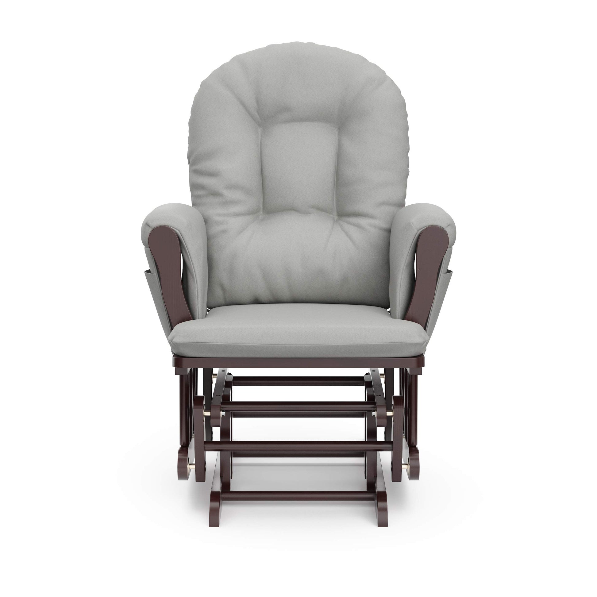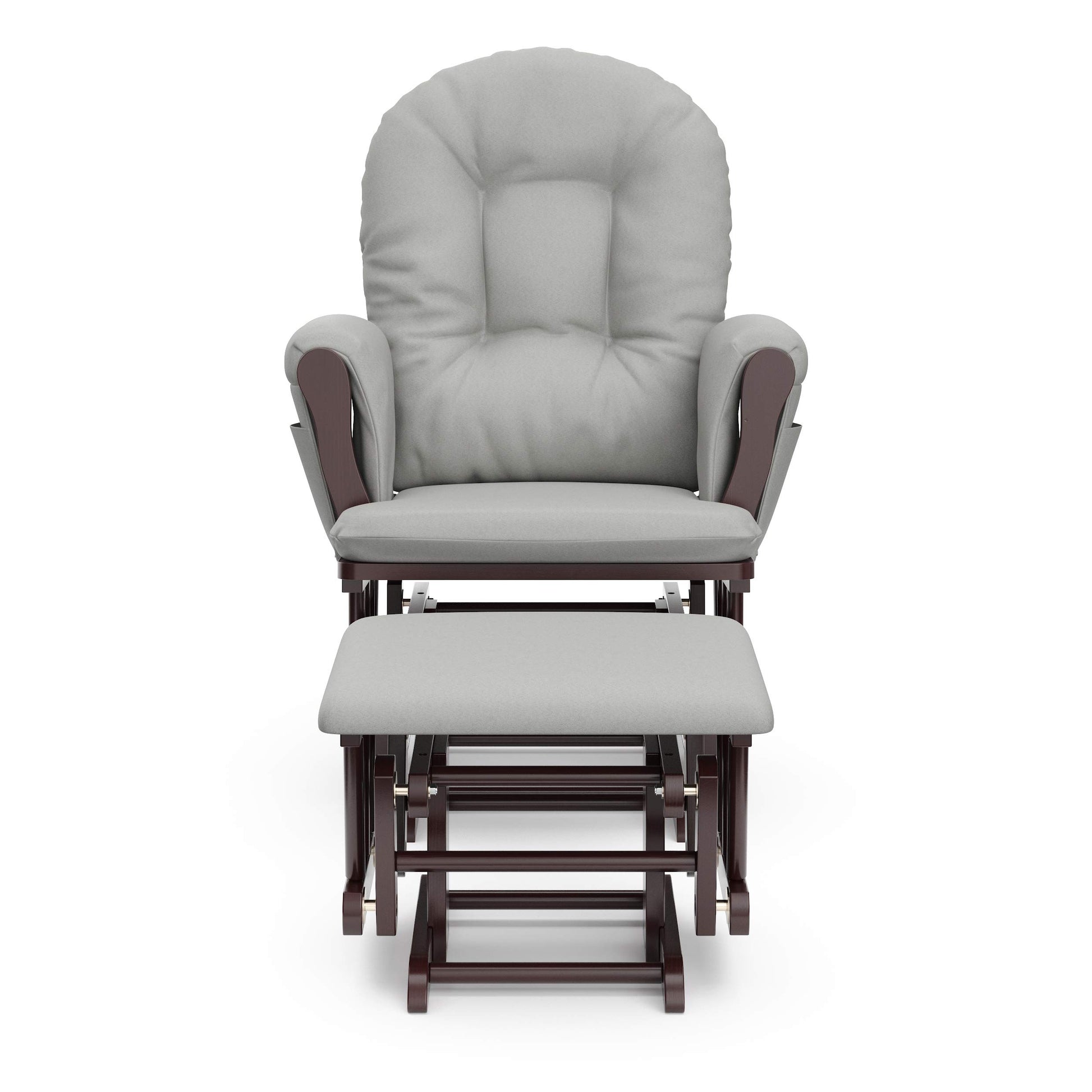 Storkcraft Premium Hoop Glider and Ottoman (Espresso Base, Gray Cushion) – Padded Cushions with Storage Pocket, Smooth Rocking Motion, Easy to Assemble, Solid Hardwood Base