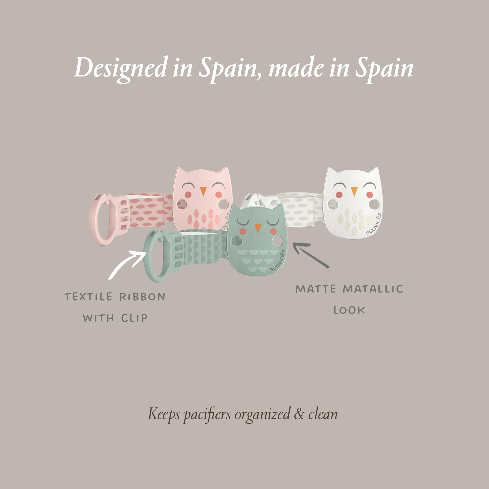 • From the #1 Spanish baby bottle & baby pacifier brand. The Suavinex Bonhomia baby pacifier clips effortlessly attach to your baby's clothing, serving as a stylish and practical accessory that prevents pacifiers from hitting the floor or getting lost. A baby essentials.