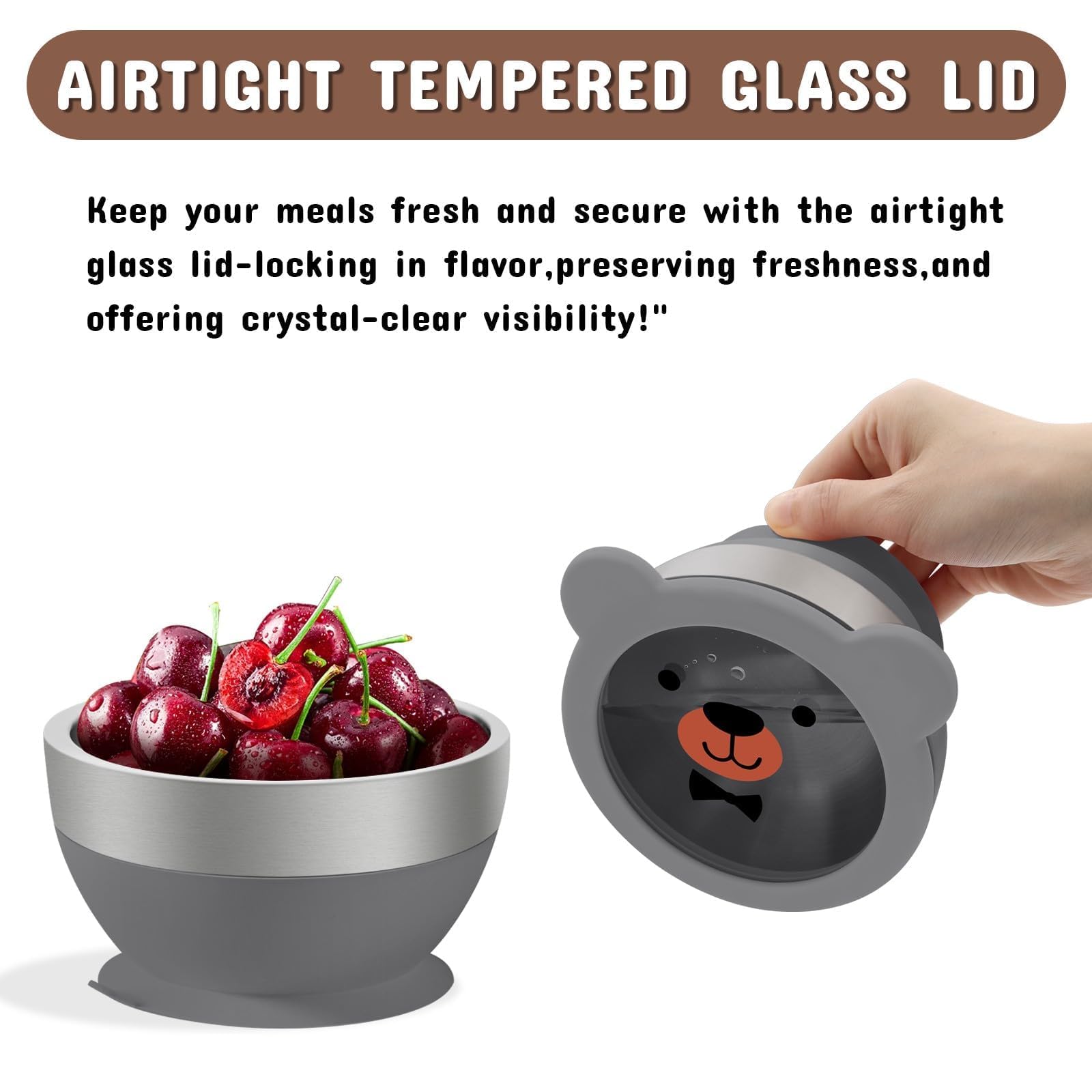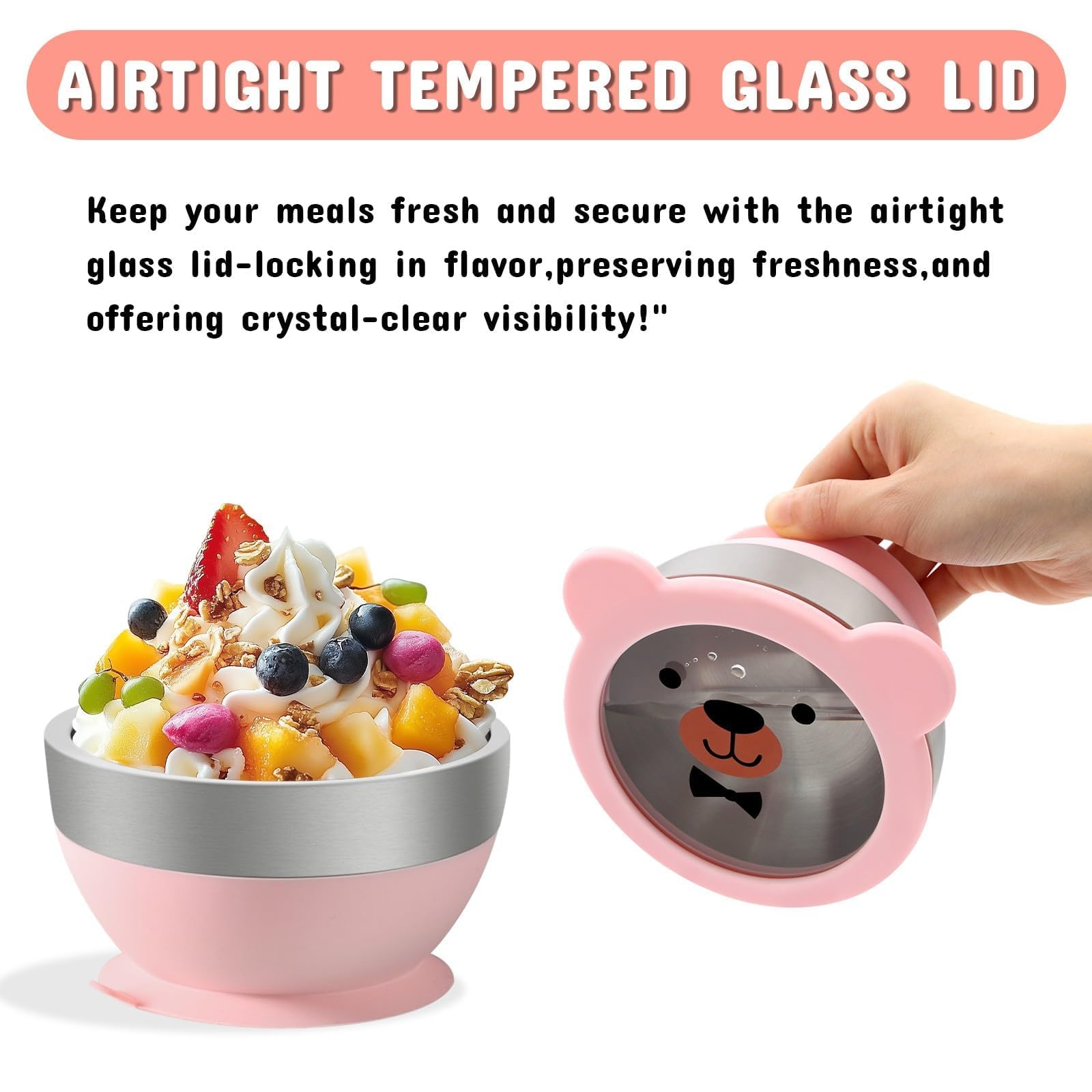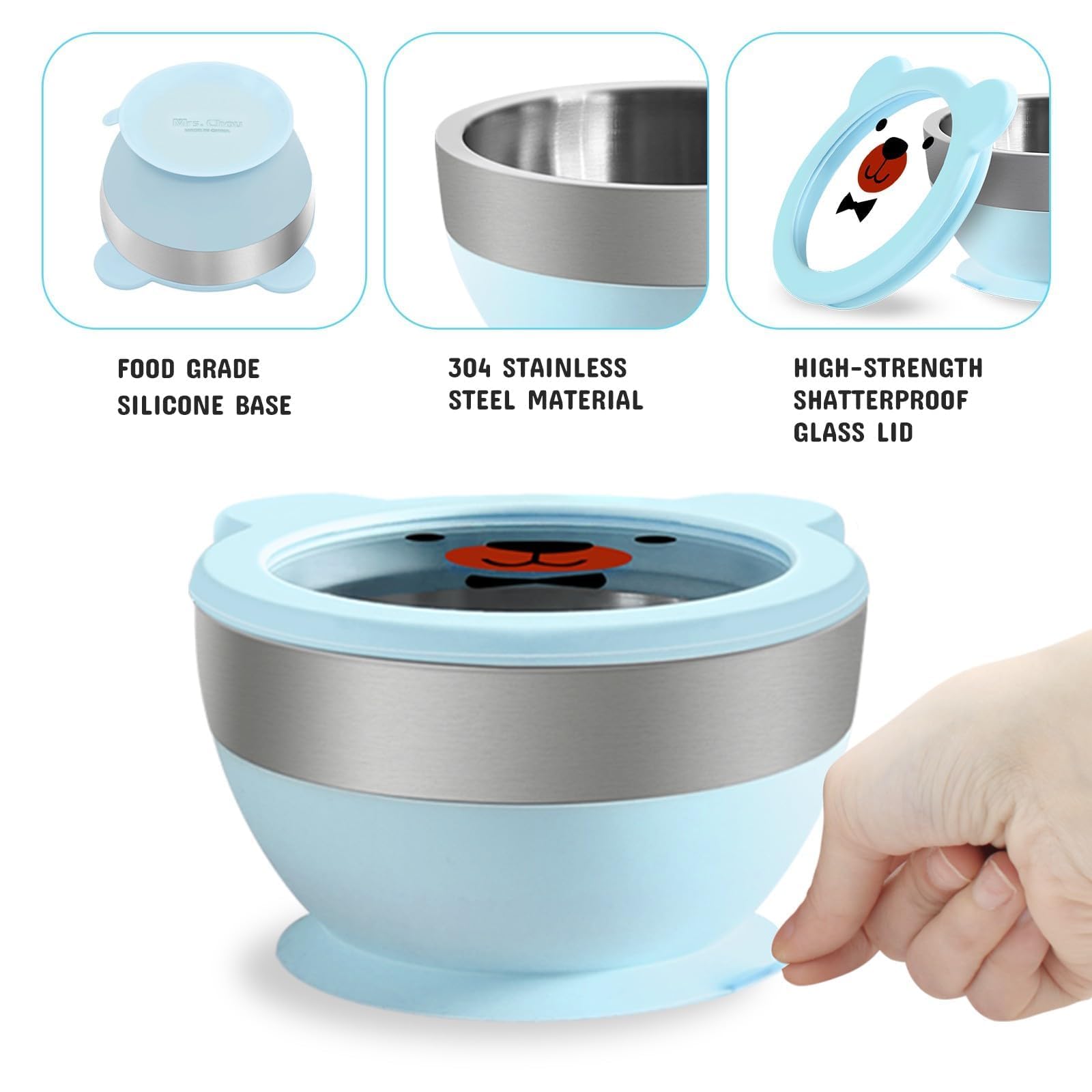Suction Bowl and Spoon Set for Babies and Toddlers Non-Slip Silicone Suction Cups, Advanced 304 Stainless Steel Bowls, Double-Layer Insulation, and BPA-Free Lids Food-Grade Safety BLUE