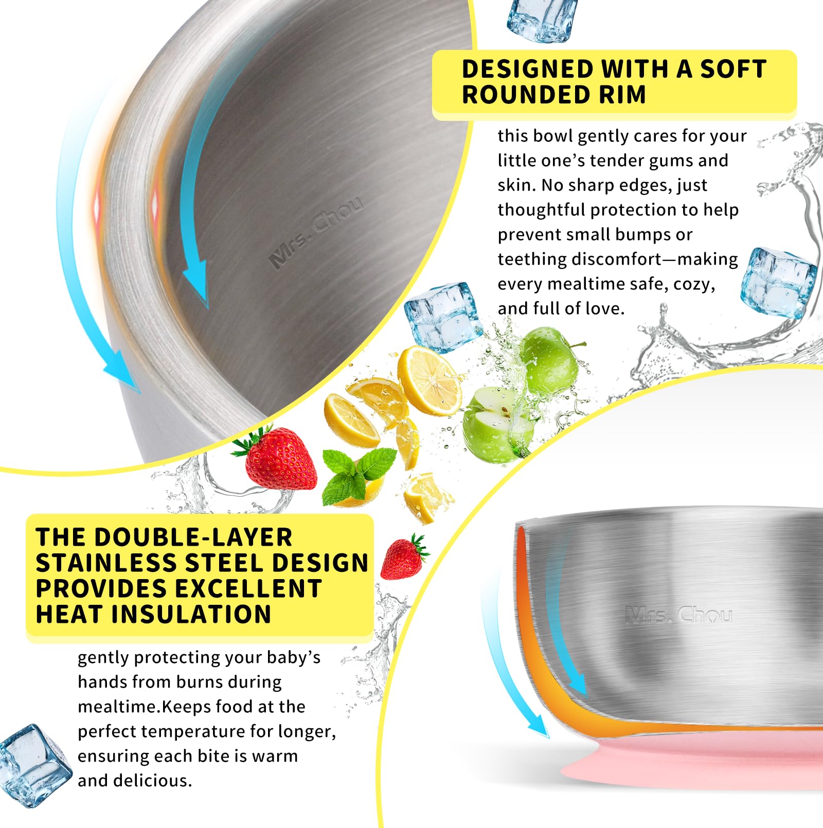 Why Choose Mrs. chou's Stainless Steel Baby Bowl with Silicone Suction Base?