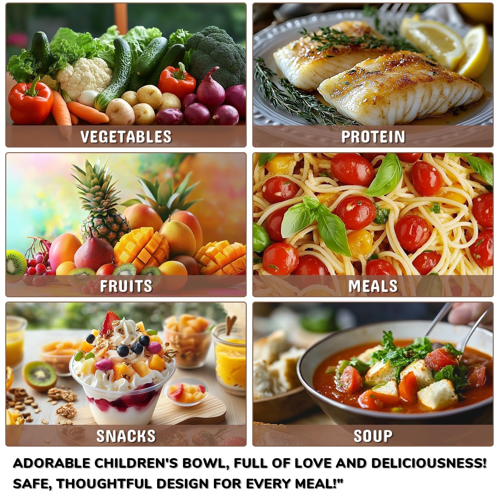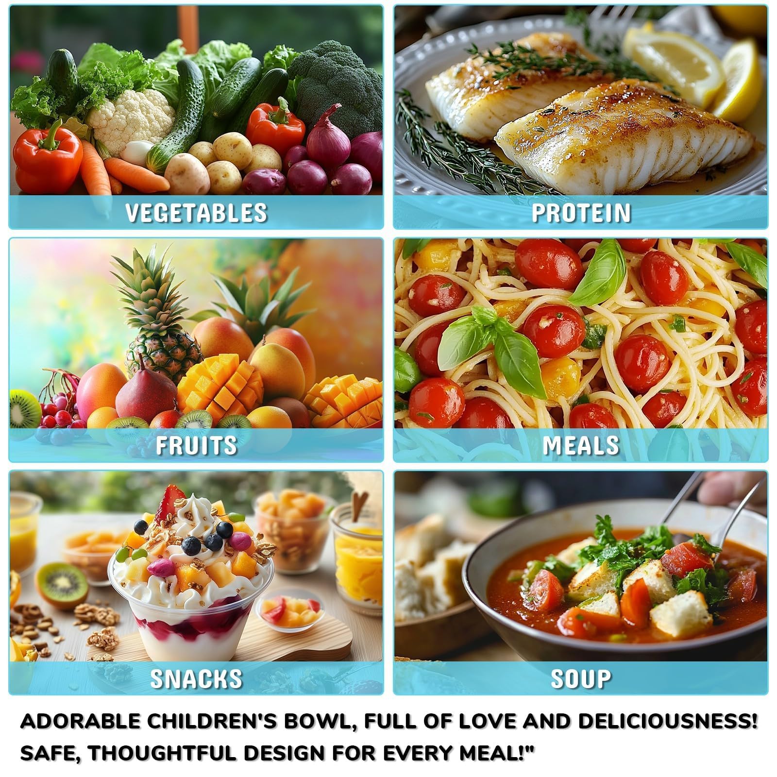 Strong suction power: Thanks to the non-slip suction cup, the children's bowl adheres firmly to smooth surfaces, preventing tipping. Encourages your child to eat independently without creating a mess.