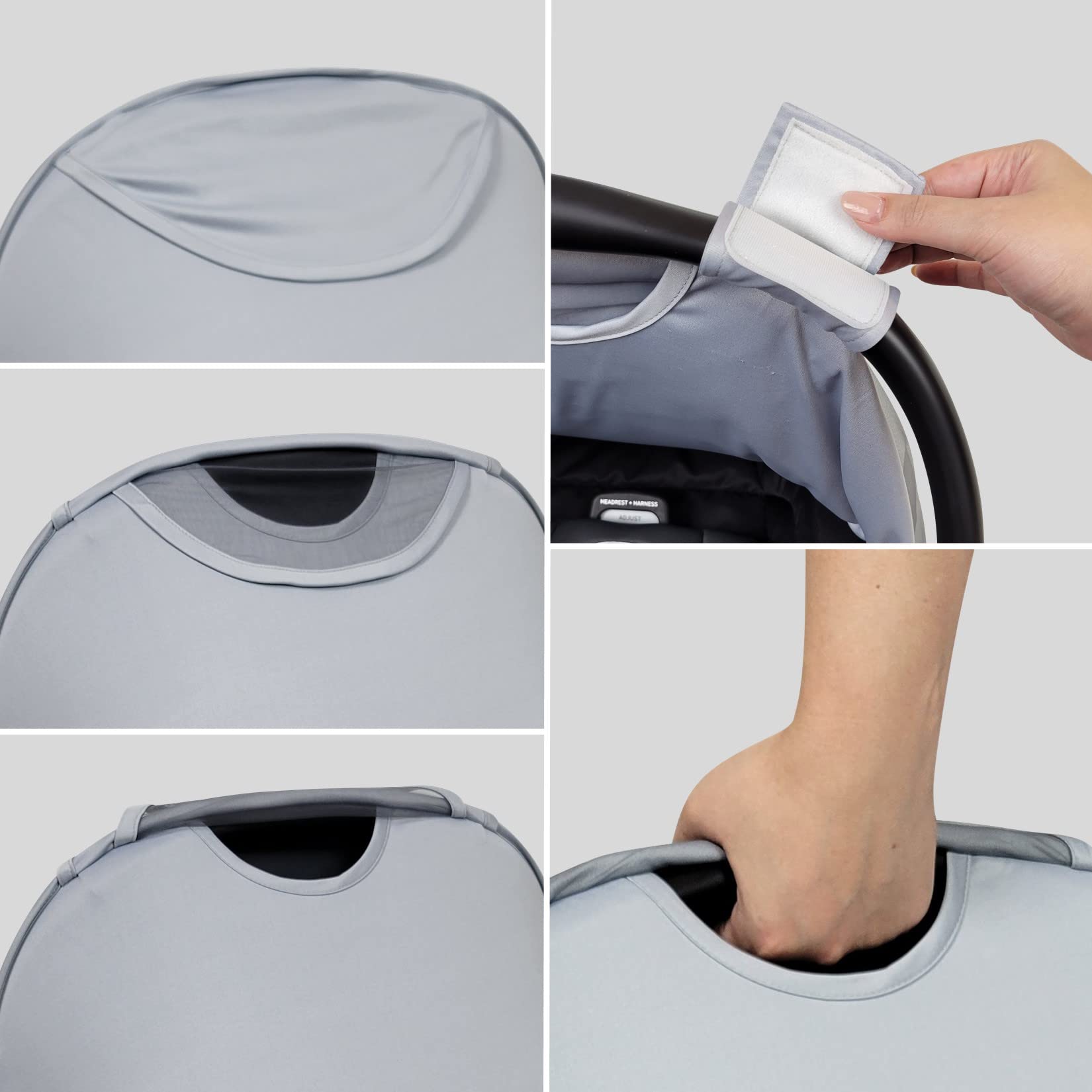 This adjustable cover is designed to go over the carry handle, providing more space for babies to stretch their arms and explore their body