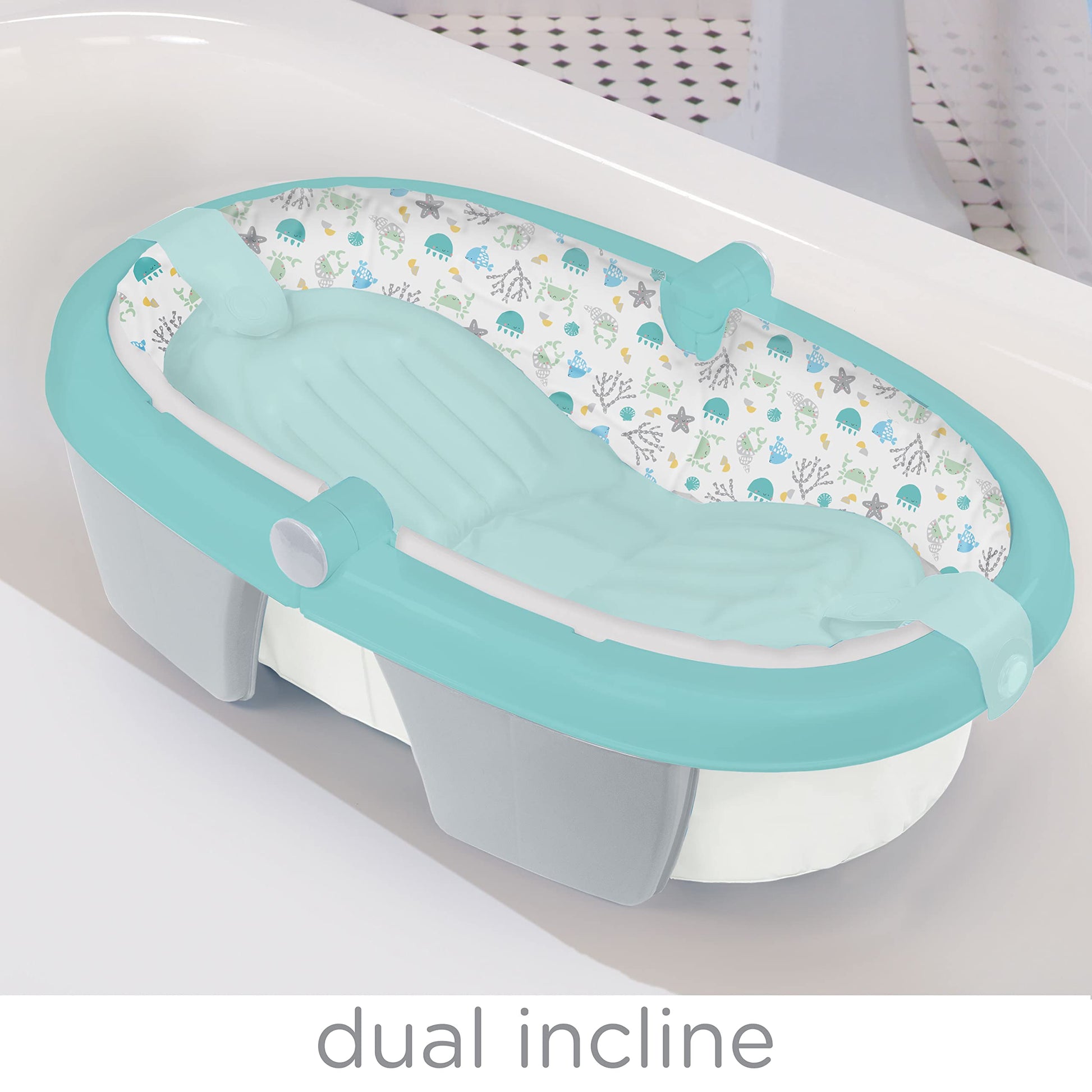 Summer Infant Foldaway Baby Bath (Under The Sea) - Convenient Baby Bathtub That Folds Compactly for Easy Storage and Travel - Inflatable Base for Extra Support - Durable Infant Tub