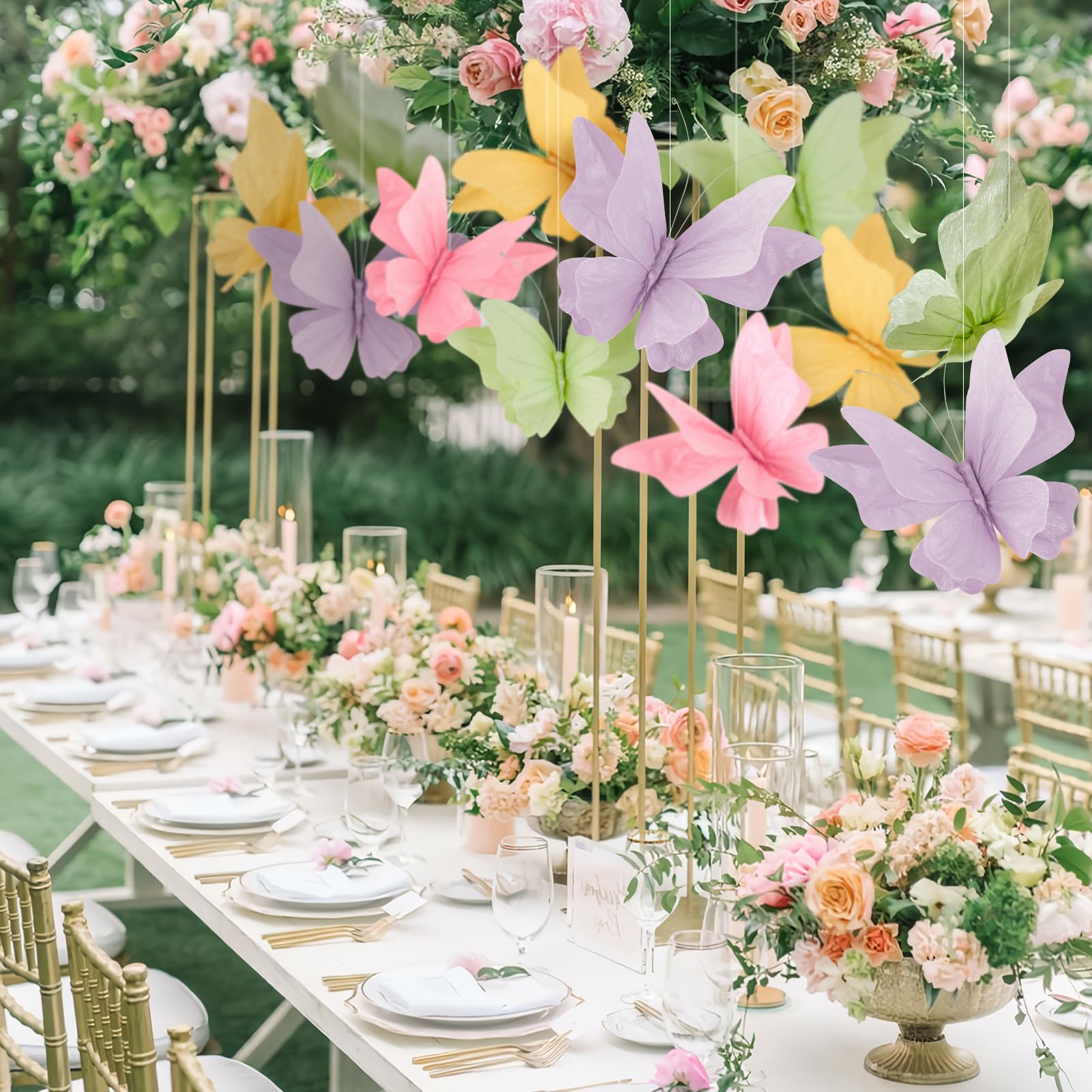 SUNBEAUTY Butterfly Party Decorations, 3D Paper Butterfly Decoration, Hanging Paper Butterfly for Baby Shower Decorations Girls, Women, Paper Flowers for Wall Decoration, Set of 4