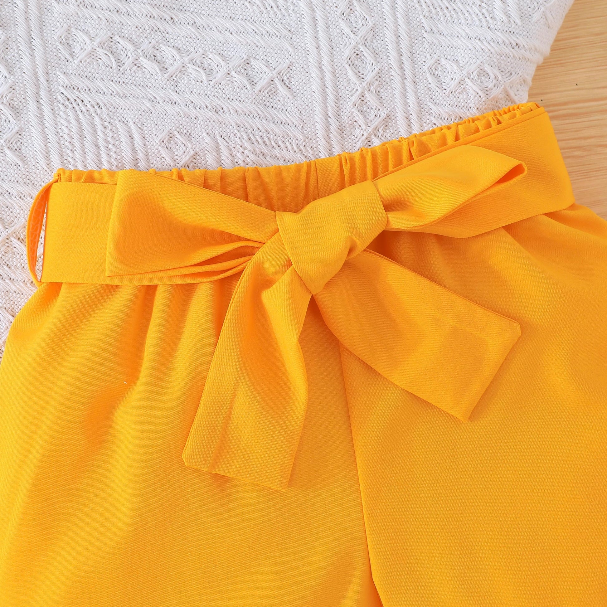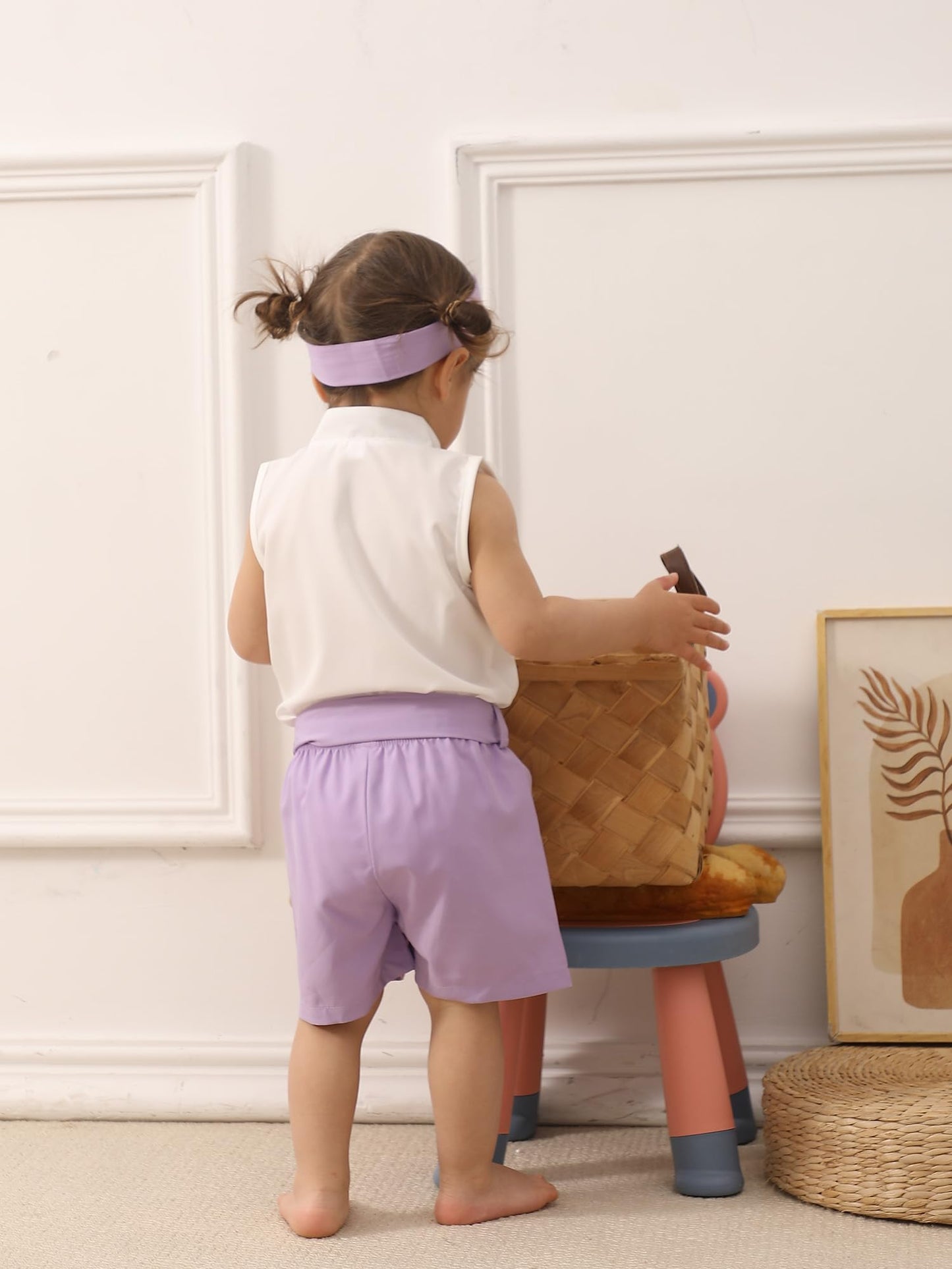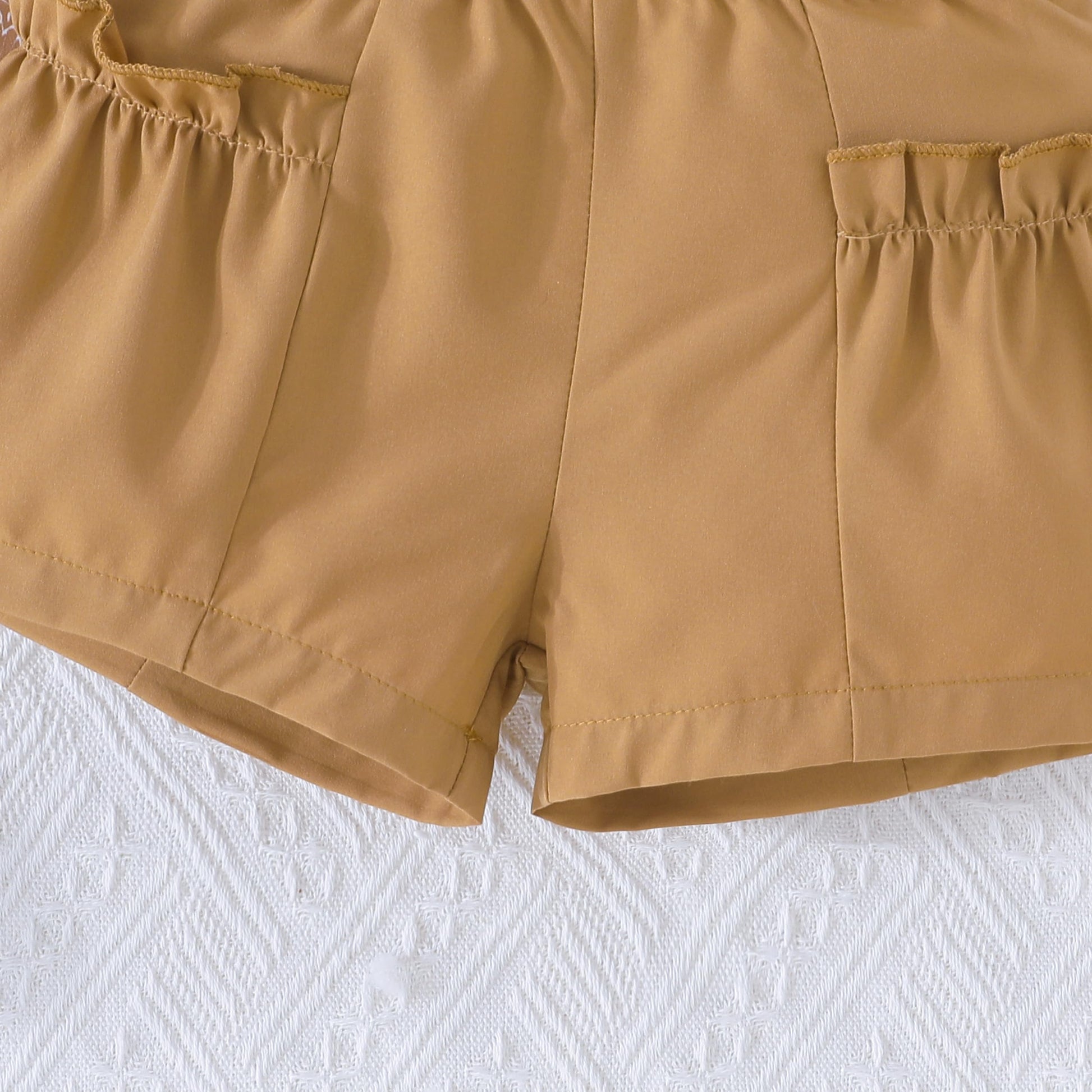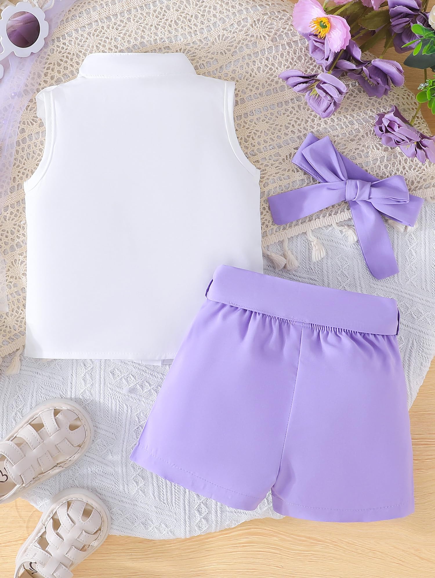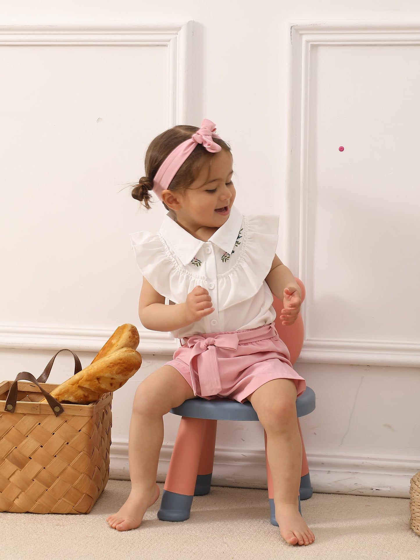 - Fashionable Design & Details: Featuring a chic solid-color ruffle sleeveless embroidery top paired with elastic shorts, adorned with delicate bow accents. The butterfly shorts design adds playful charm to this baby girl summer outfit.