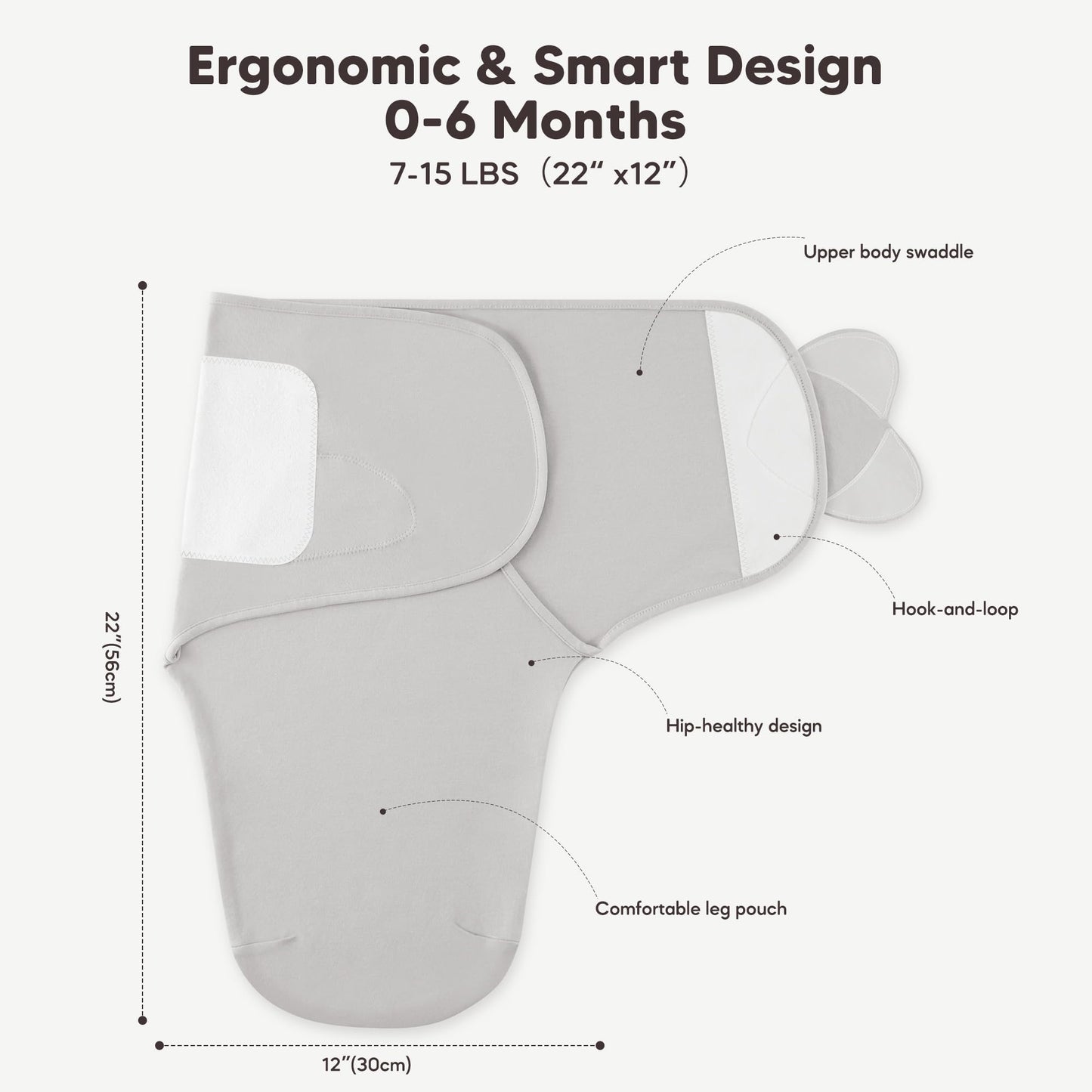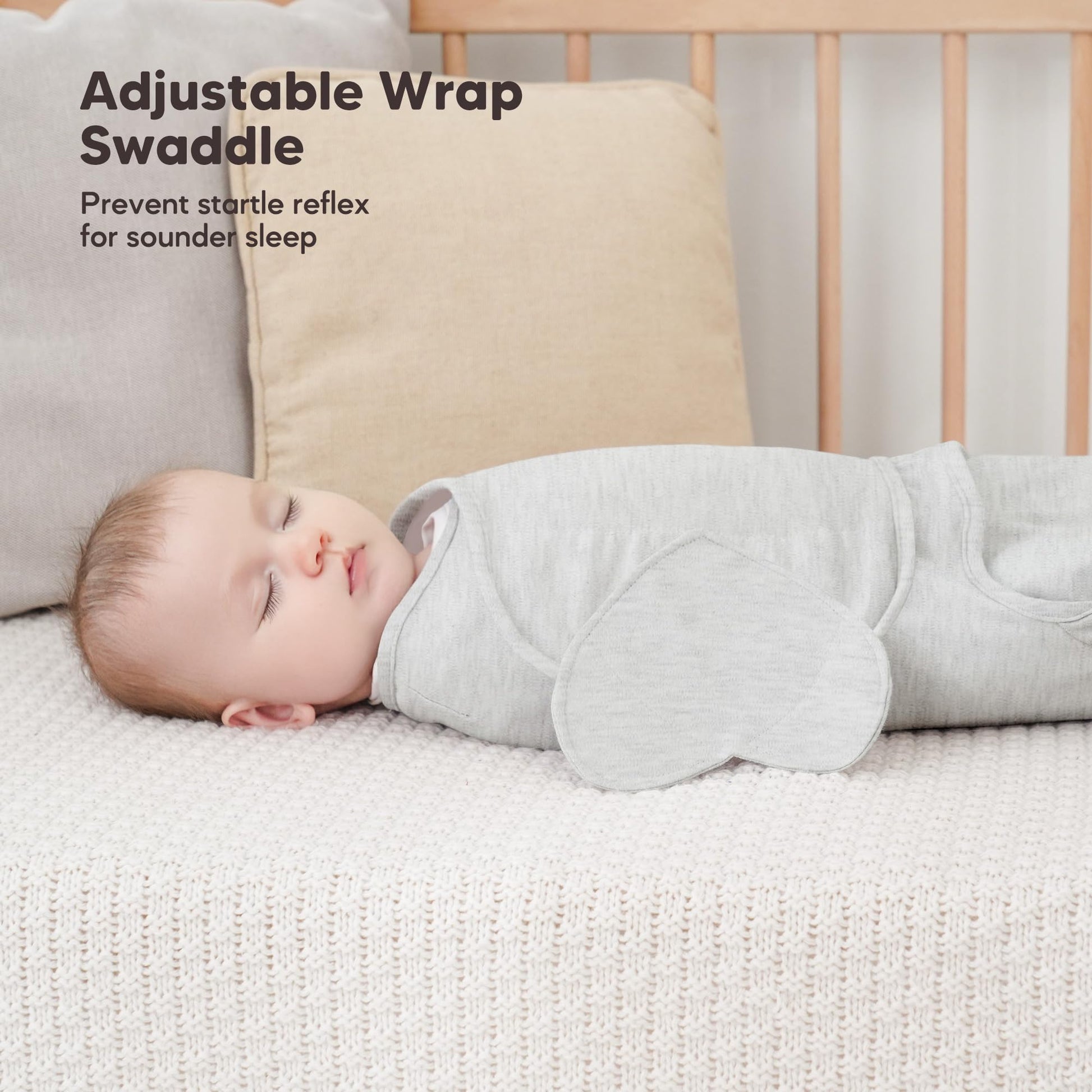- Silent Hook & Loop for Improved Baby Sleep Quality: Our baby swaddle sleep sack features a precision-engineered hook-and-loop design for silent use. The velcro swaddle creates a snug, cozy womb-like environment for newborns and infants, making them essential for soothing your baby and promoting better sleep. With a degree of stretch, the baby swaddle ensures your baby's comfort.