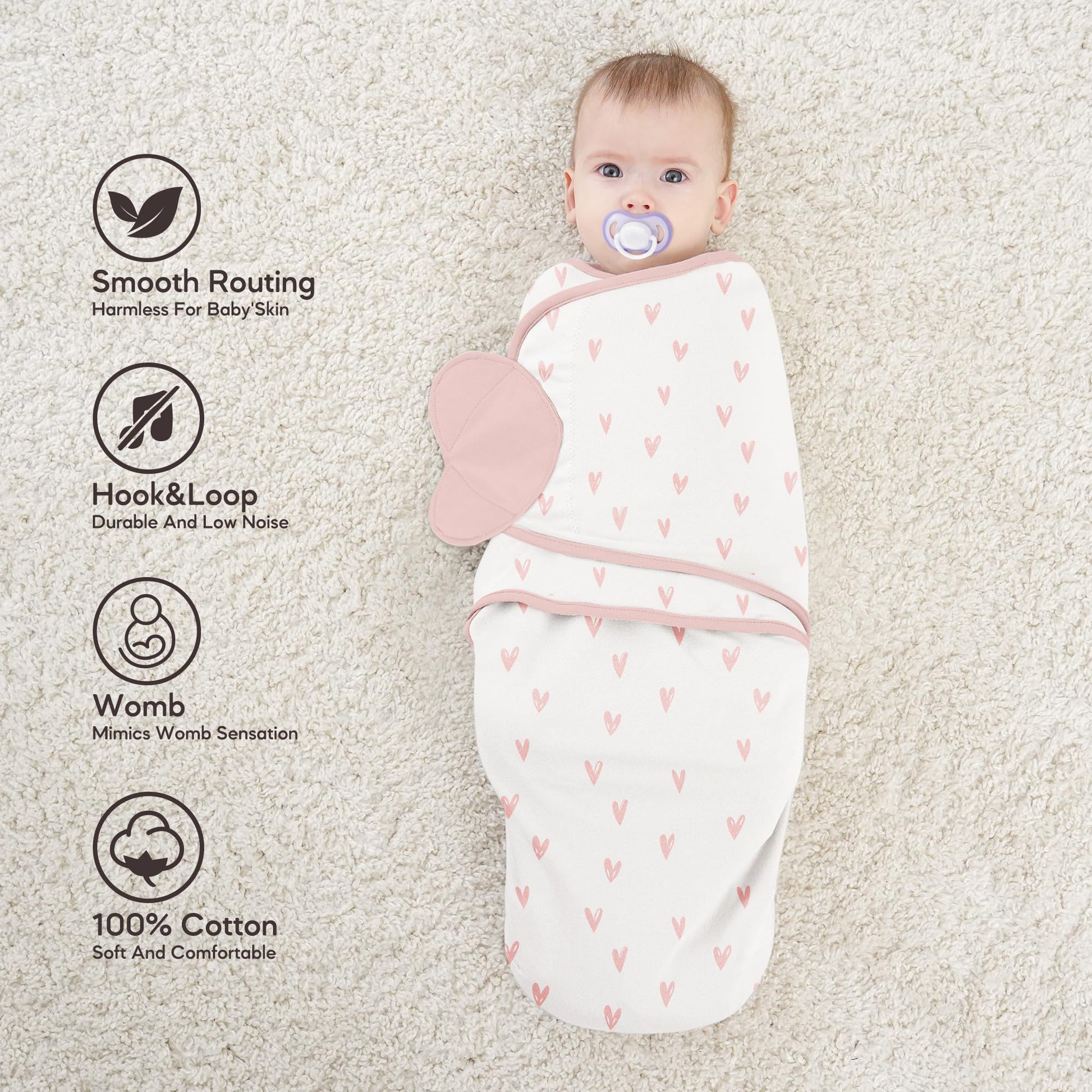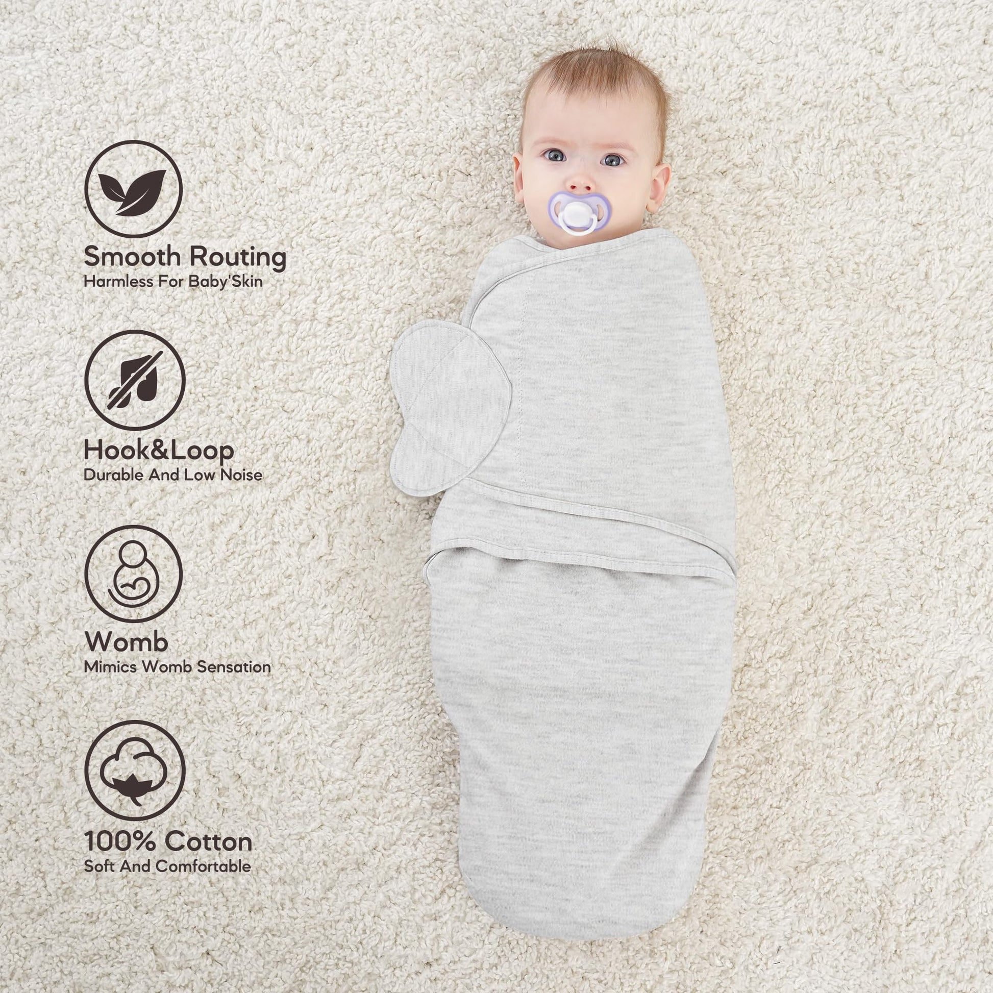 Susurration Swaddles for Newborns, 100% Cotton Baby Swaddle Sleep Sack, with Adjustable Velcro, Breathable and Durable Unisex Swaddle Sleep Sack, 3 Pack