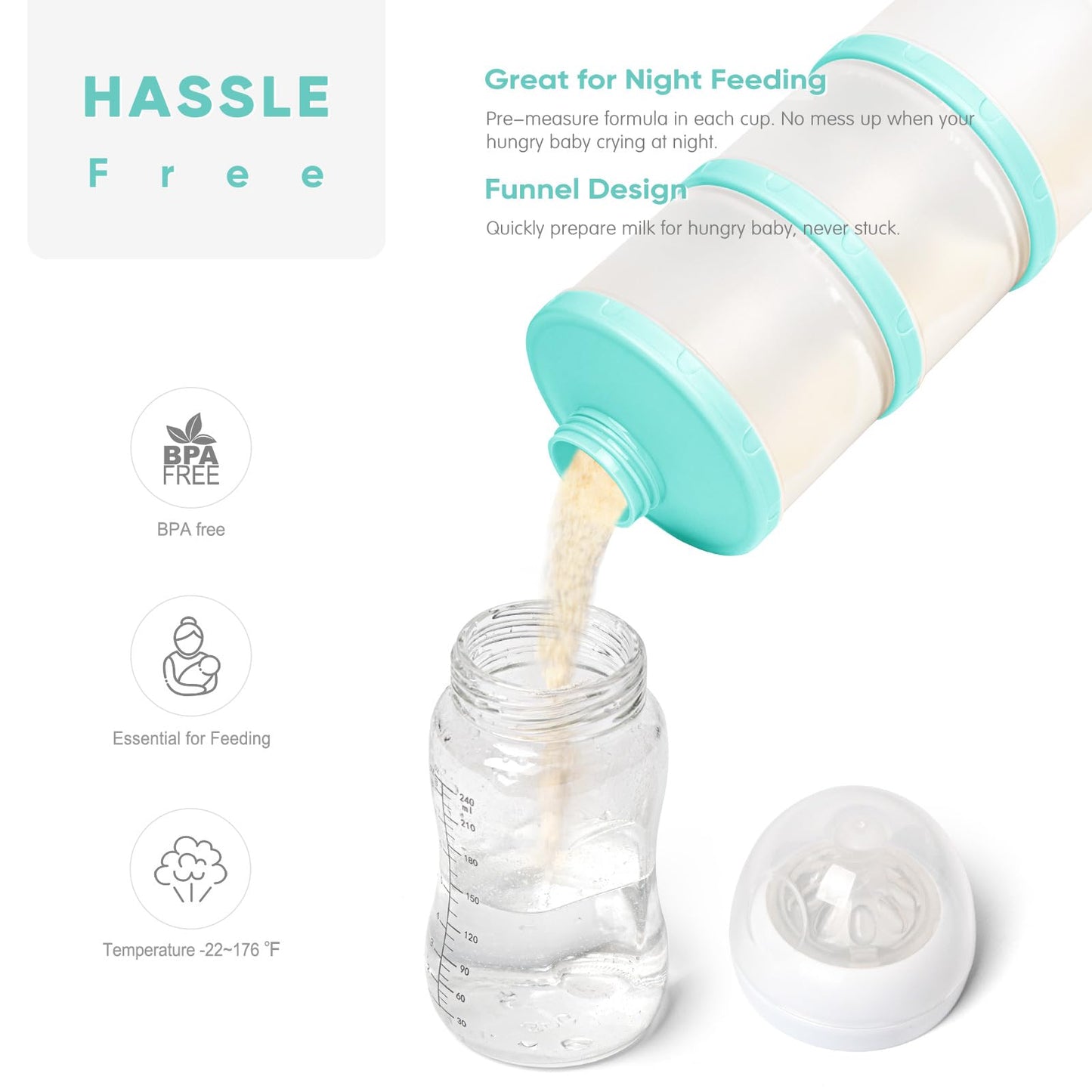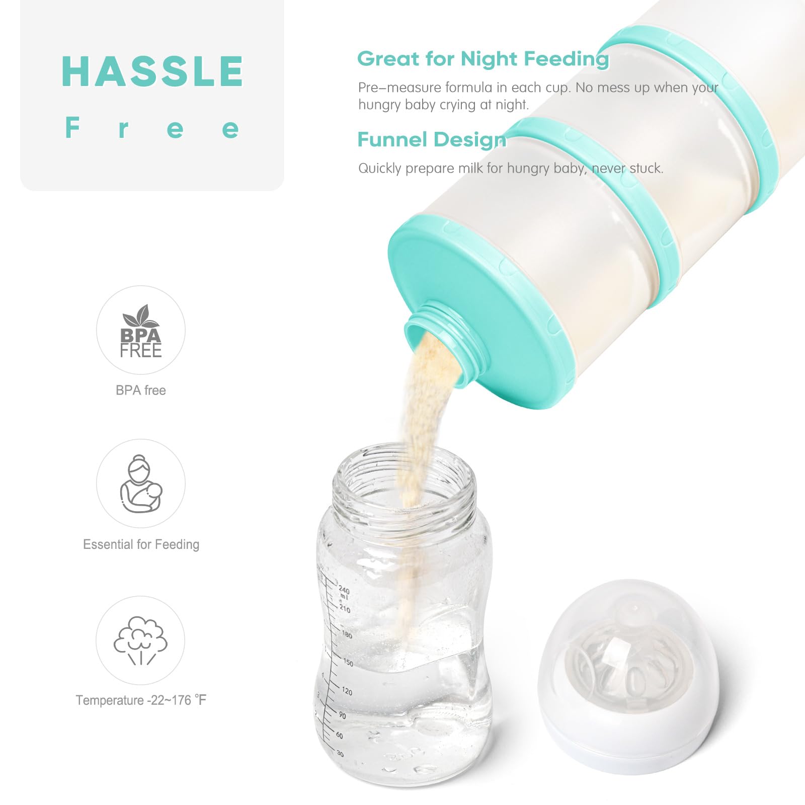 - Safe and Portable: The formula container is made of food-grade pp plastic, BPA free. Each container can hold 60g/ 2.1 oz milk powder. Easy baby feeding and parents stress free.