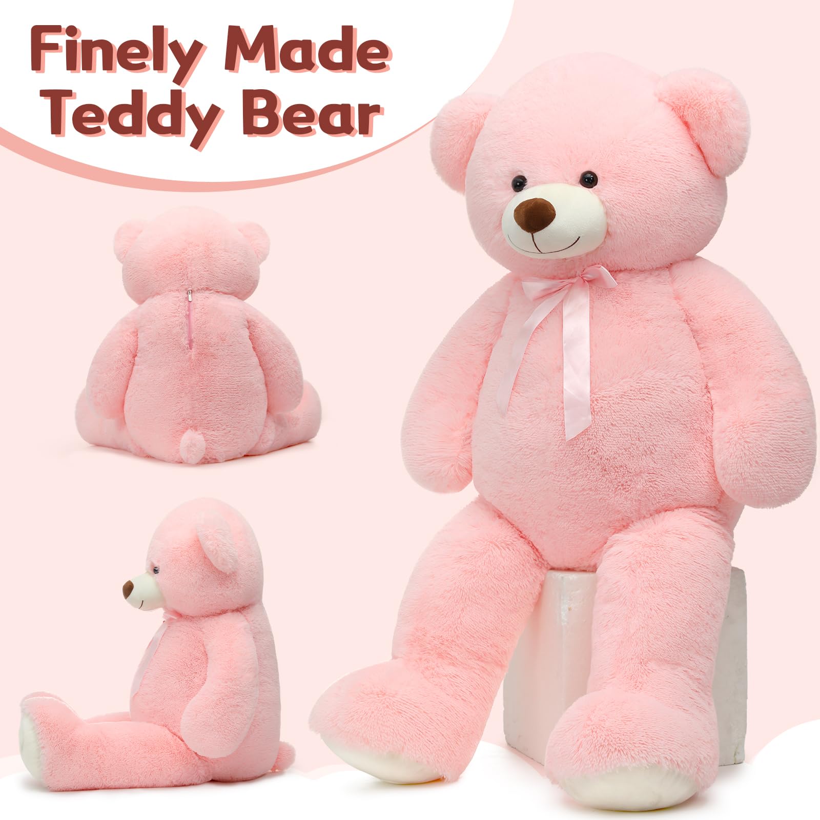 - Perfect Gift : The stuffed bear is the perfect gift for many occasions. You can give it to your girlfriend,lover,mummy or kids on Valentine's Day, Christmas, Birthday, Thanksgiving and Wedding party. They will love it.Humanized Design : You don't have to worry about how to clean the gaint bear animal. The zipper design at the back can easily take out the cotton, which is more convenient to wash.