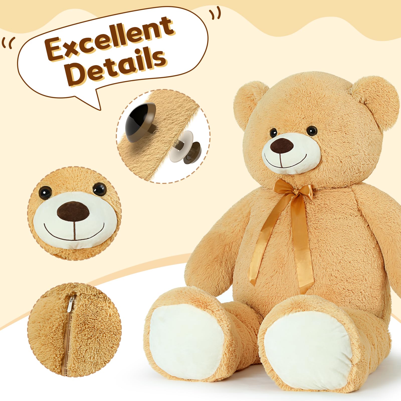 Tezituor 59" Gaint Teddy Bear Stuffed Animal,5ft Life Size Big Teddy Bears,Light Brown Cute Soft Plush Toy,Gifts for Kids Girls Boys Girlfriend Valentine,Christmas,Birthday,Baby Shower,Wedding Party