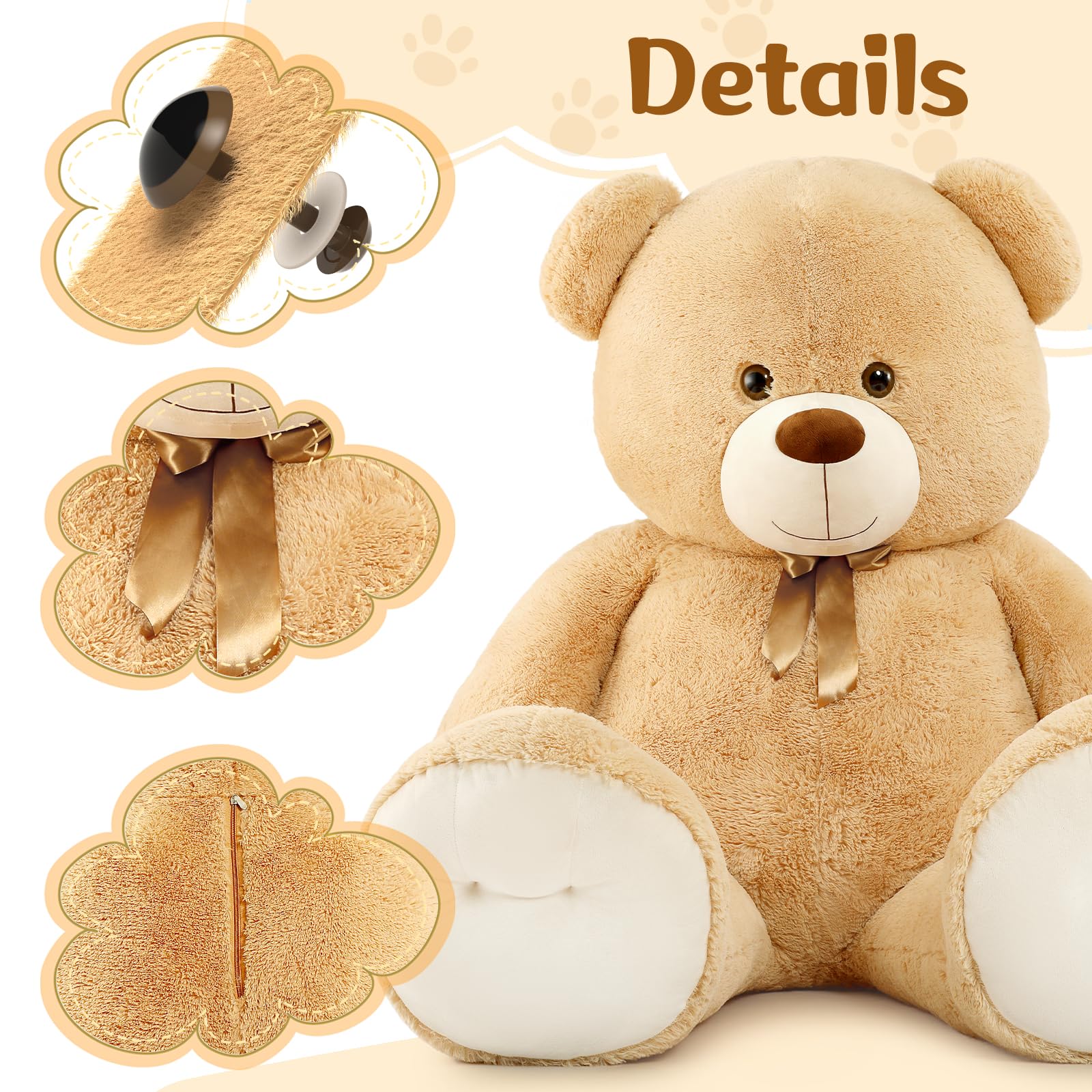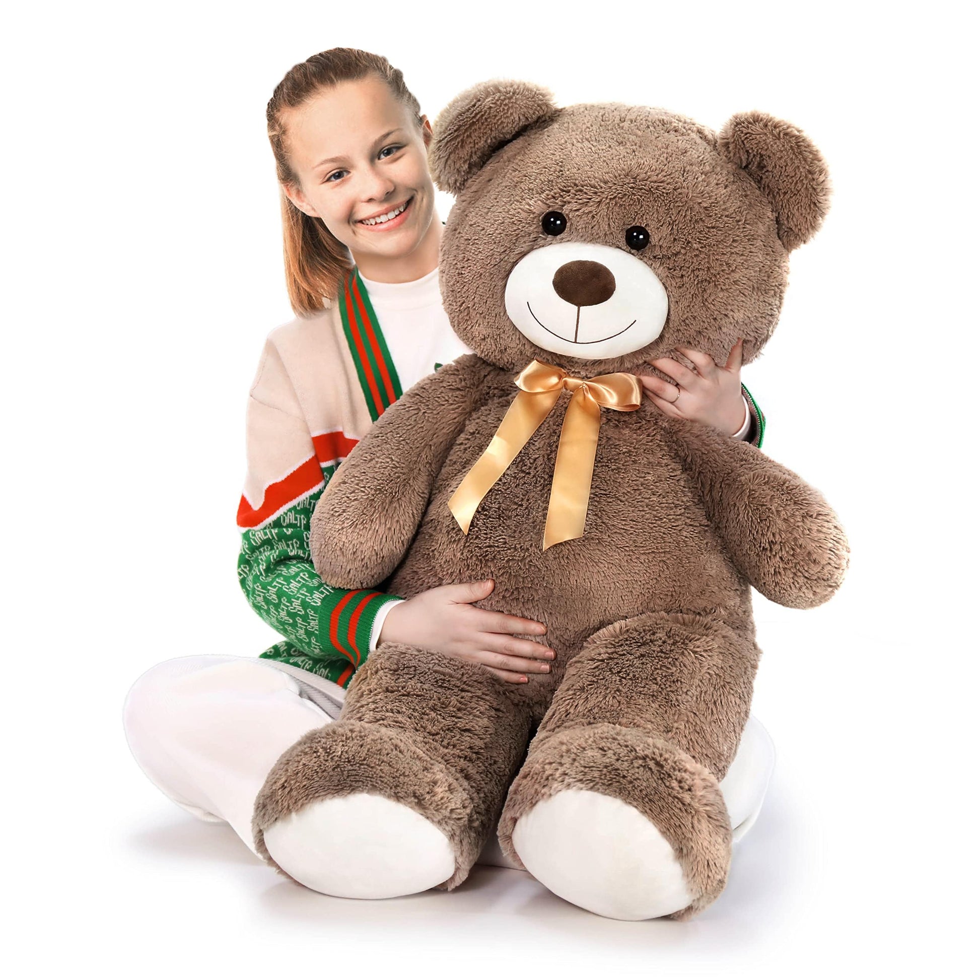 - You Will Receive : A 59-inch Brown teddy bear. It is wearing a smooth ribbon bow, very cute. This furry teddy bear is made of high-quality plush fabric and filled with soft PP cotton.