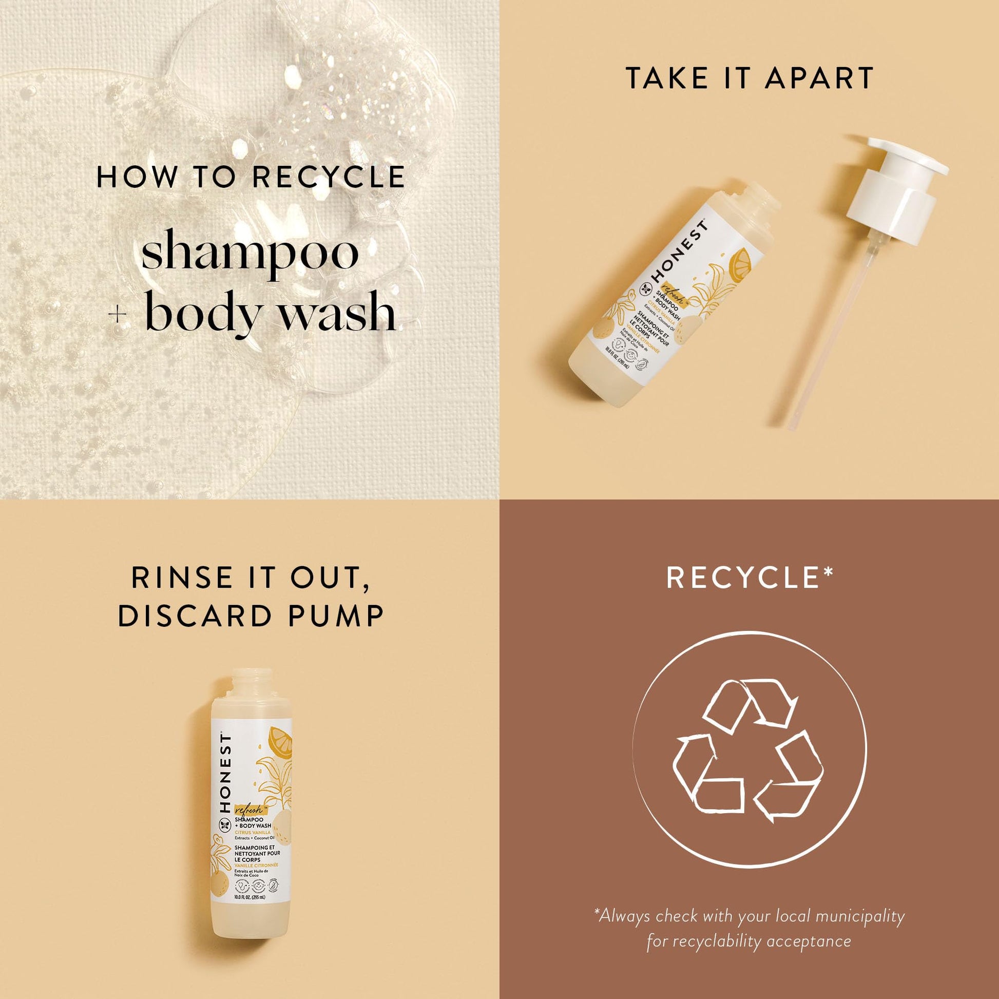 Get a tear-free cleanse from head to toe with our 2-in-1 gentle shampoo + body wash. Our gentle formula will leave your lil one’s scalp and skin (or yours!) clean and moisturized. Available in CALM (Lavender), NOURISH (Sweet Almond), REFRESH (Citrus Vanilla), and SENSITIVE (Fragrance Free). Each of our scents was created with a blend of naturally derived botanicals and essential oils—the whole fam is in for a treat with every bathtime or shower routine. Select scents available as Refills: SHAMPOO + BODY WASH REFILLS MADE WITH: Chamomile extract, aloe and four naturally derived scents MADE WITHOUT: Parabens, Phthalates, Dyes, Synthetic Fragrances, Formaldehyde Donors, SLS/SLES Made in the USA with US and imported materials. Not Tested on Animals and No Animal Byproducts. Please Recycle! Discard pump. Always check with your local municipality for recyclability acceptance.
