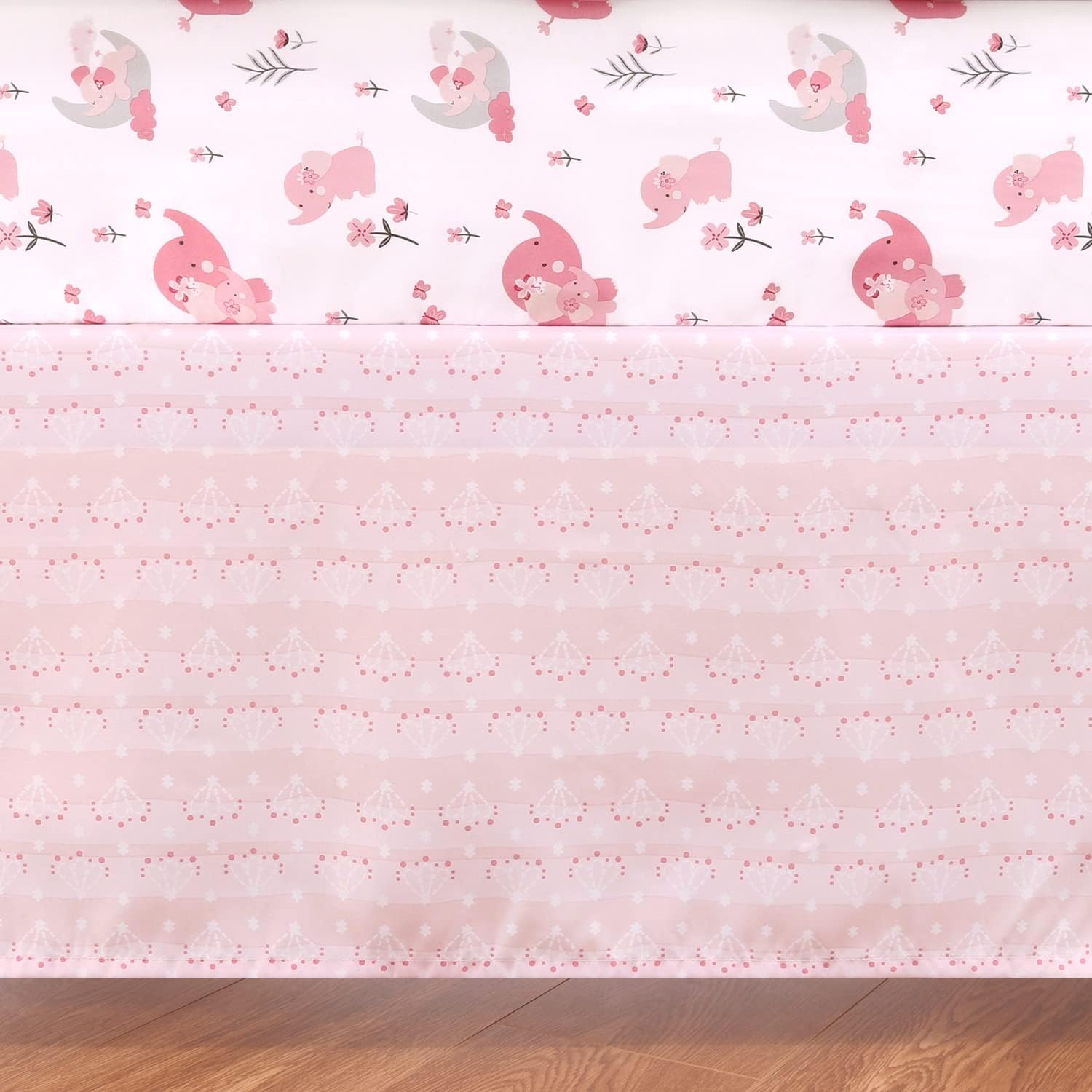 The Peanutshell 3 Piece Baby Crib Bedding Set for Girls - Newborn, Infant & Toddler Nursery Bed Set Decor with Fitted Crib Sheet, Dust Ruffle Comforter - Pink Elephant