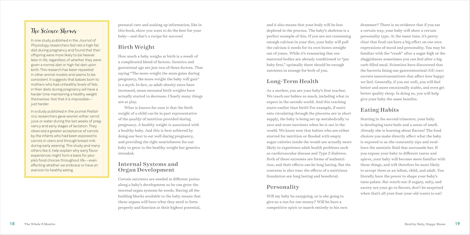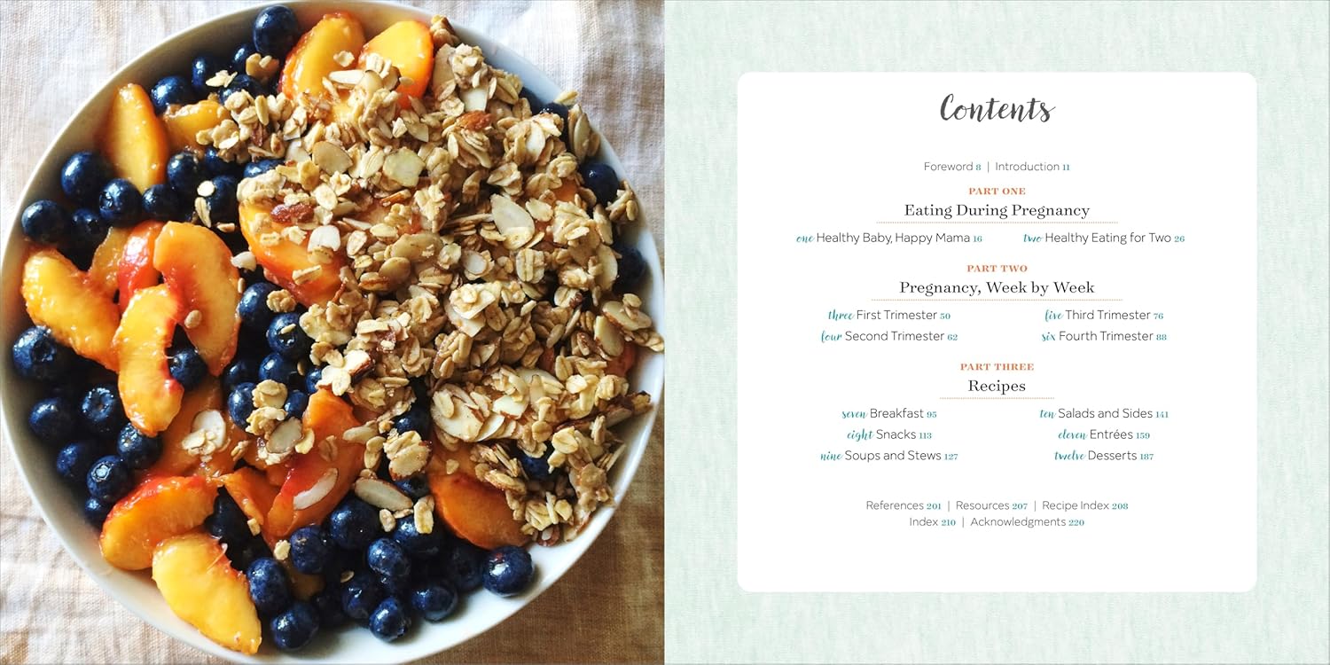 100+ nourishing recipes―Find a wide variety of ways to nourish your body and your baby, including vegetarian, vegan, and gluten-free options, plus advice and tips for nausea, cravings, and other common pregnancy symptoms.