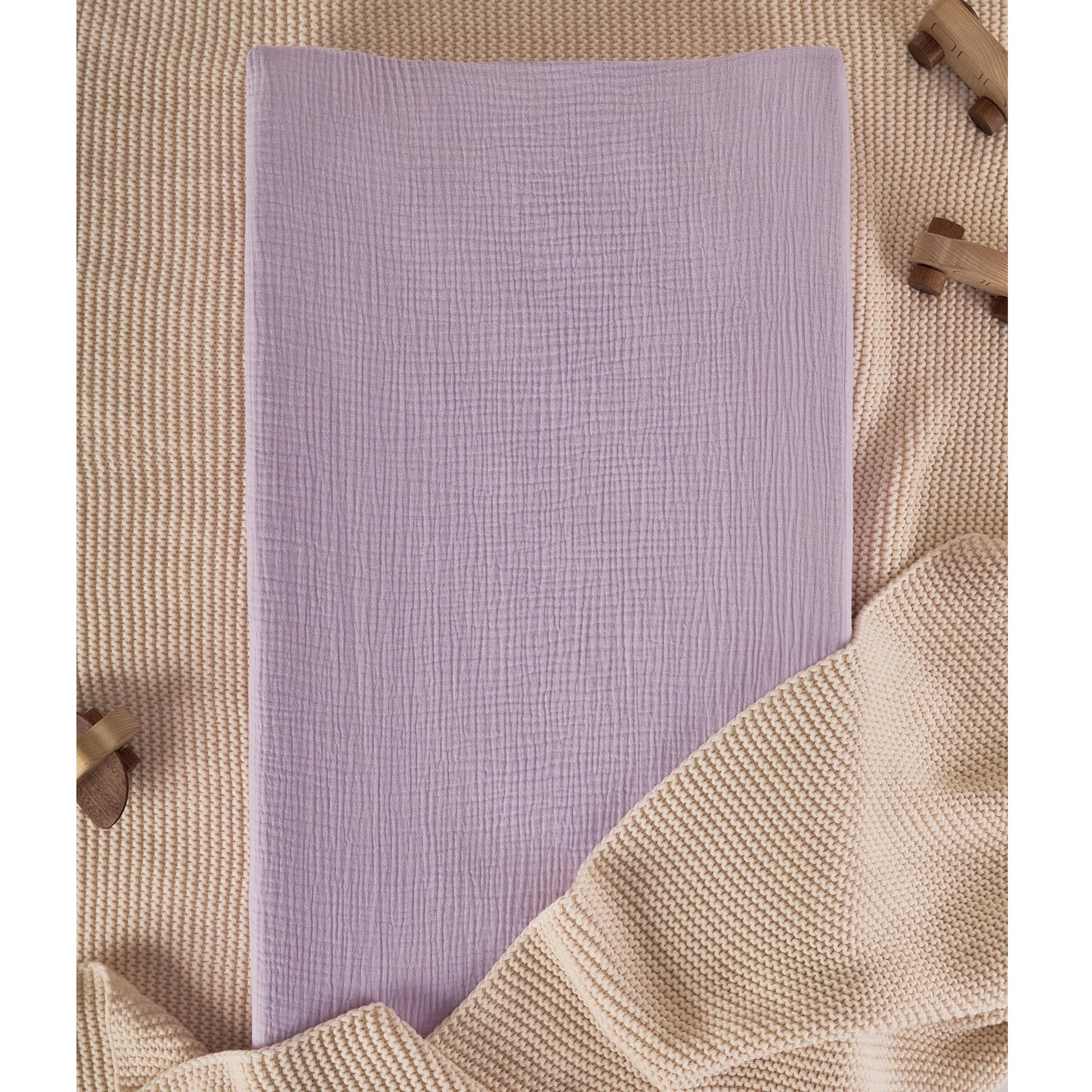 TILLYOU Muslin Changing Pad Cover for Girls Boys, Soft and Breathable Baby Diaper Changing Pad Cover, 2 Pack Light Purple&Light Pink