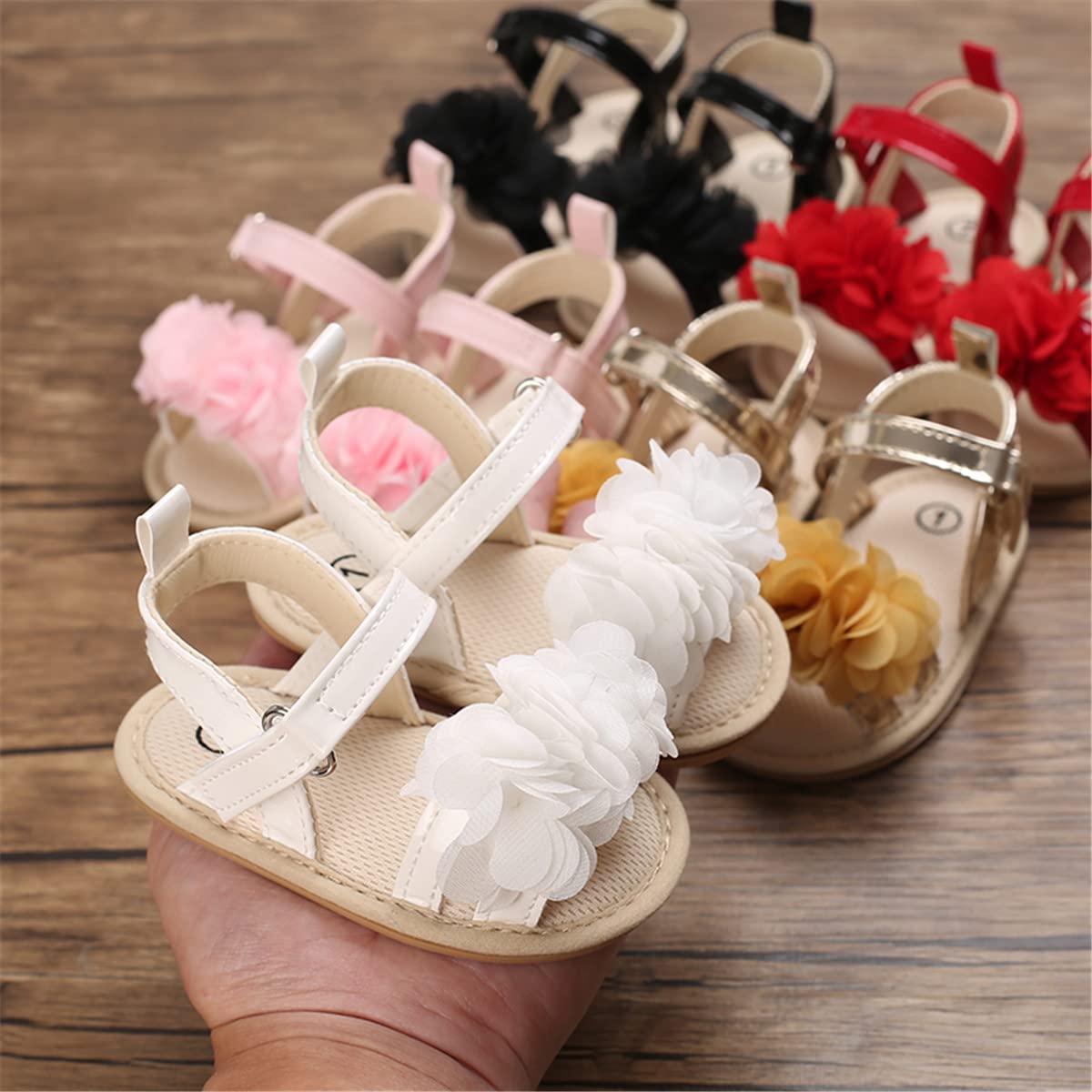 Timatego Infant Baby Girls Summer Sandals Anti-Slip Soft Sole with Flower Toddler First Walkers Crib Dress Shoes