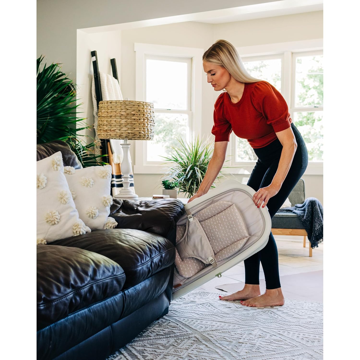 The lightweight Boho Chic 2-in-1 Rocker has a minimalist design and easily transitions from a rocking seat to a stationary seat. If baby needs help relaxing, the gentle rocking mode helps little ones calm down. And for those moments when baby wants to play, the stationary mode gives them the chance to explore the sensory toys. The Boho Chic 2-in-1 Rocker is perfect for spending time together as a family, too. This cozy, earth-toned rocker is equipped with a comfy, soft inlay––the perfect support for your newborn. It has three recline positions for baby's comfort that easily adjust with one hand. Additionally, the Boho Chic 2-in-1 Rocker comes complete with interactive toys on a removable toy arch that keep baby entertained. It all starts with the plush koala doll that’s soft and cuddly. Then there’s the wooden rattle with crinkly leaves that stimulate baby’s senses. When play time with your little one is done, the Boho Chic 2-in-1 Rocker folds flat and is easy to move around the house. Keeping it clean is simple, too. You can wipe it down, or unzip and machine wash the fabric cover. The 2-in-1 Rocker is made for babies from birth up to 20 lbs. – Never let babies sleep in rockers, bouncers or swings.