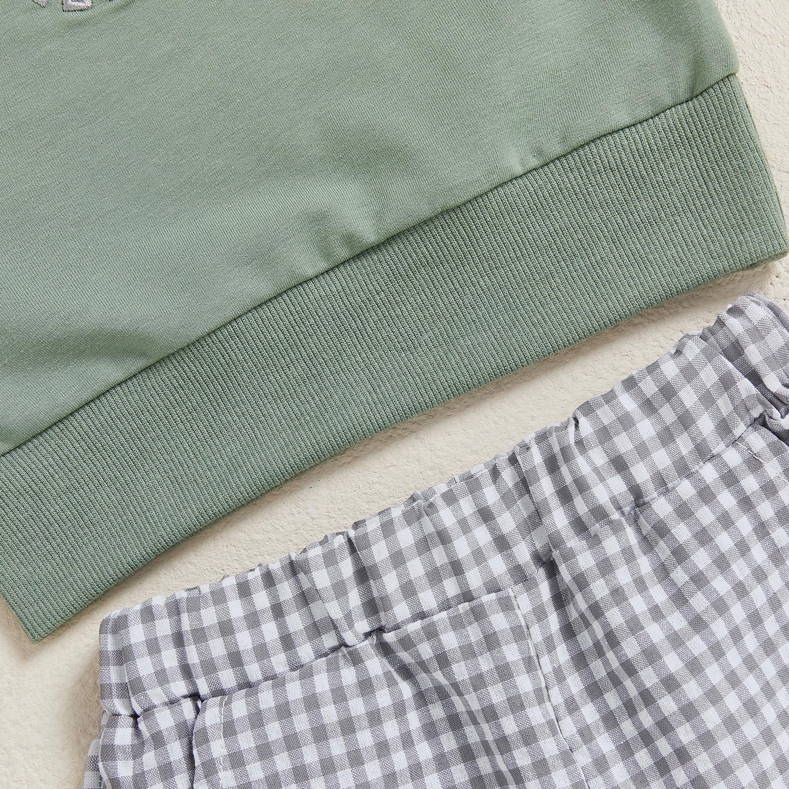 - Free Combination: These baby boy excavator outfit can be freely combined and matched; Perfectly shaping a cute image, paired with children's sports shoes and sneakers 1pcs sweatshirt + 1pcs plaid pants