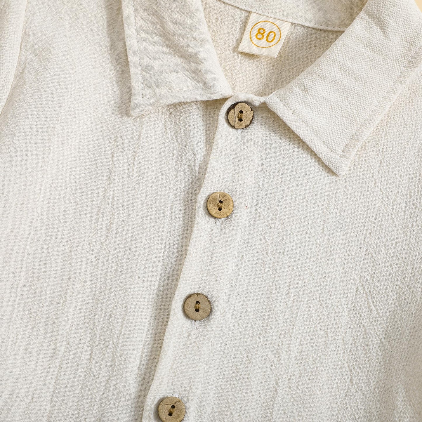 Toddler Baby Boy Linen Outfit Button Down Shirt Plain Shorts Cute Infant Newborn Photoshoot Clothes Summer 2Pcs Set