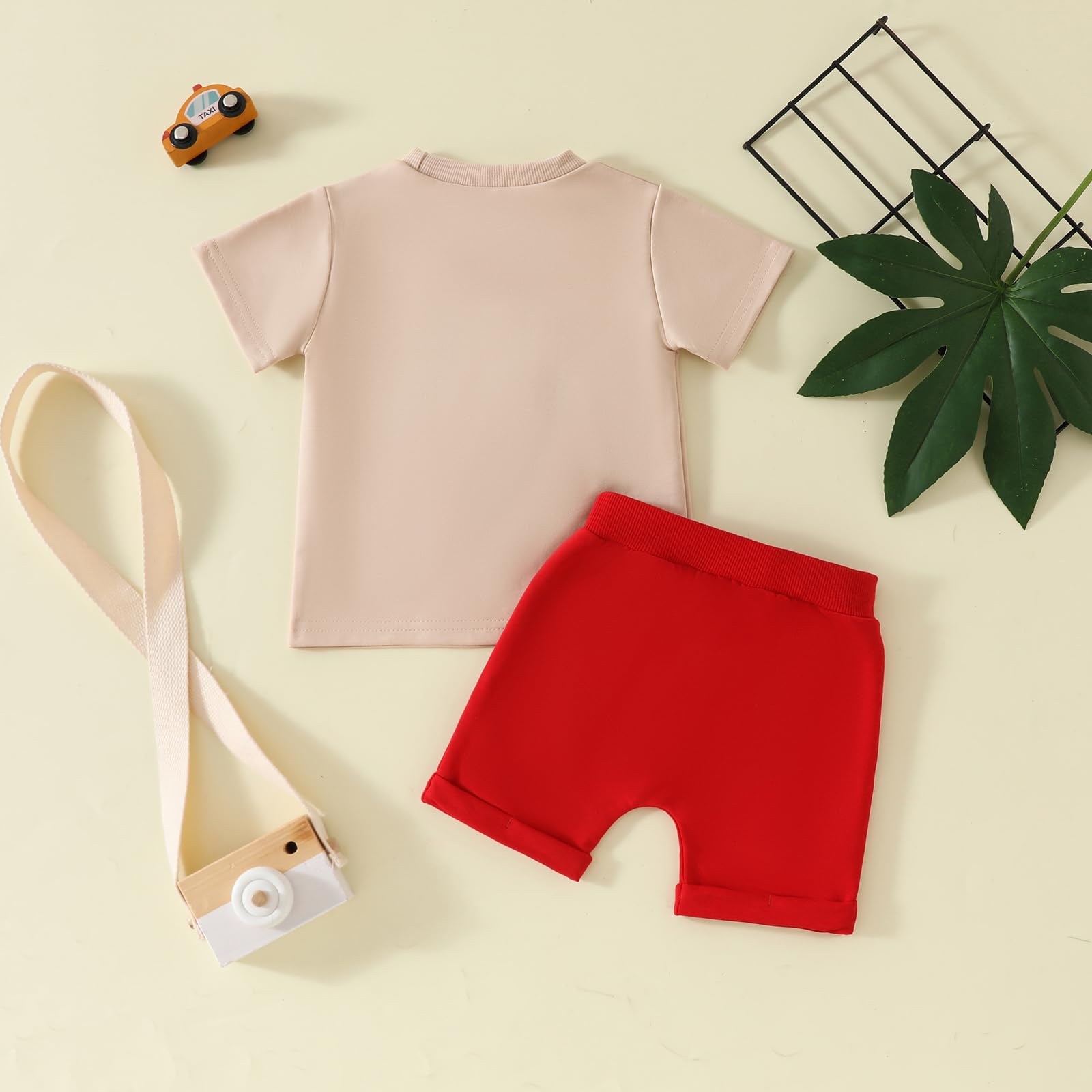 - Package: 1* short sleeve T-shirt +1* Shorts. The 2pcs baby boy summer outfits make your baby trendy and cool. The boys' 2-piece outfit is stylish and easy to wear, making your little one stand out among his peers. Cute baby boy summer outfits/ farm theme toddler boy summer outfits/ trendy toddler boy clothes for boys