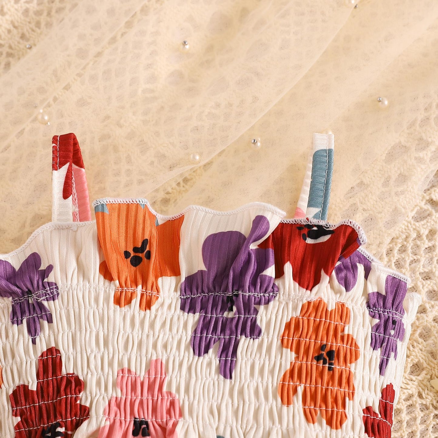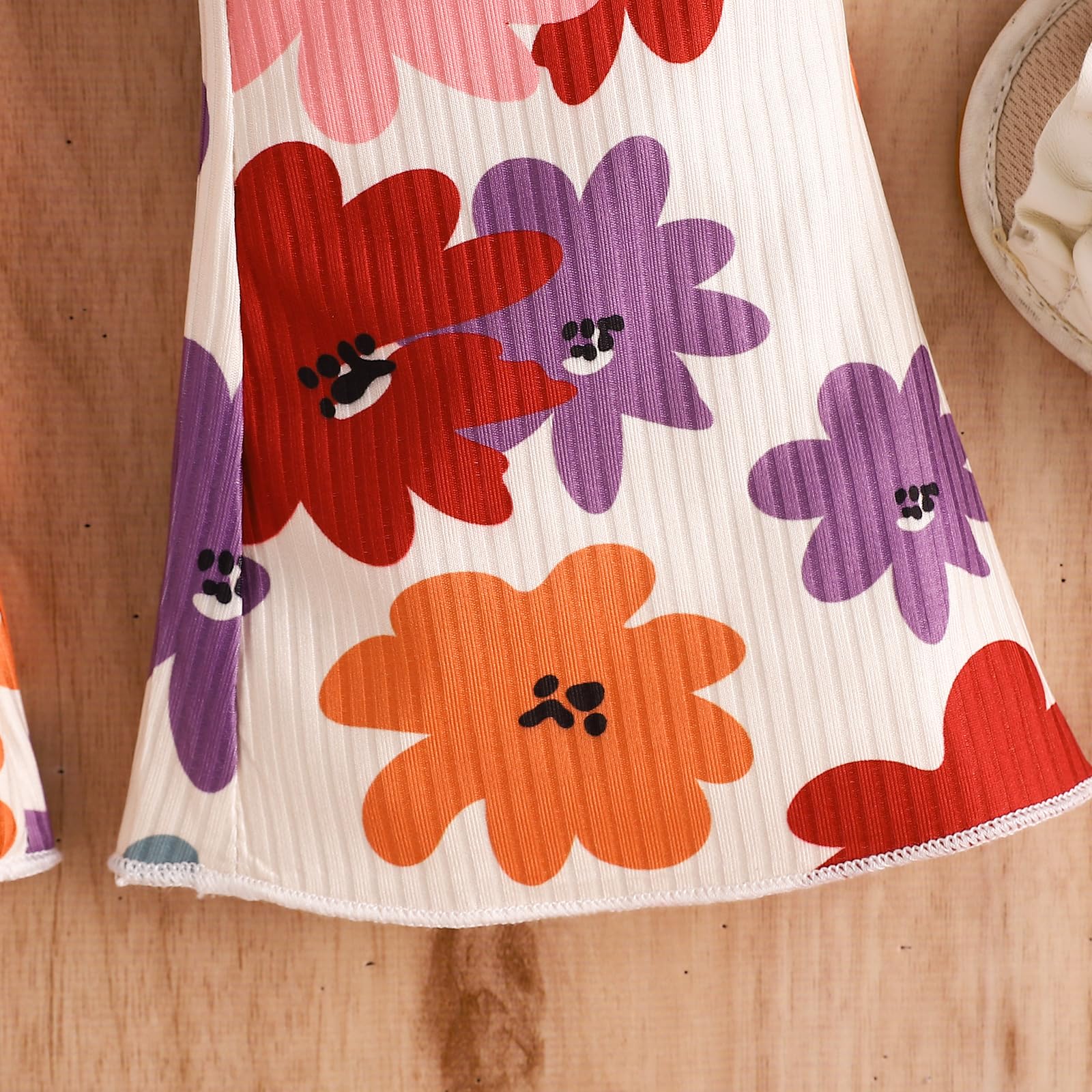 Toddler Baby Girl Boho Outfits Floral Ruffle Rib Sleeveless Halter Tops Bell Bottom 2Pcs Kids Summer Clothes Set