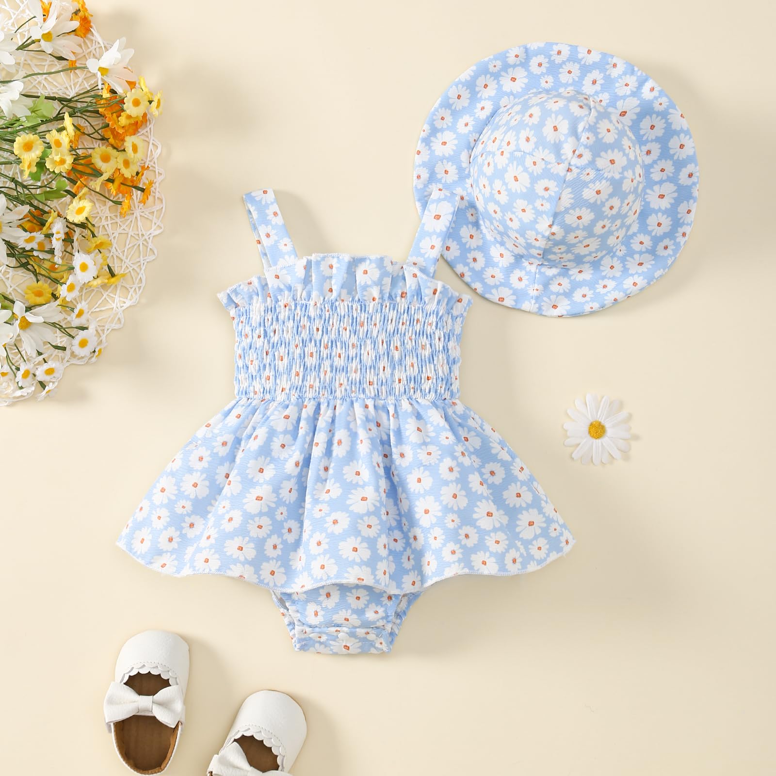 - Design:floral romper for baby girl, halter backless dress with matching hat, it will make your baby more adorable.