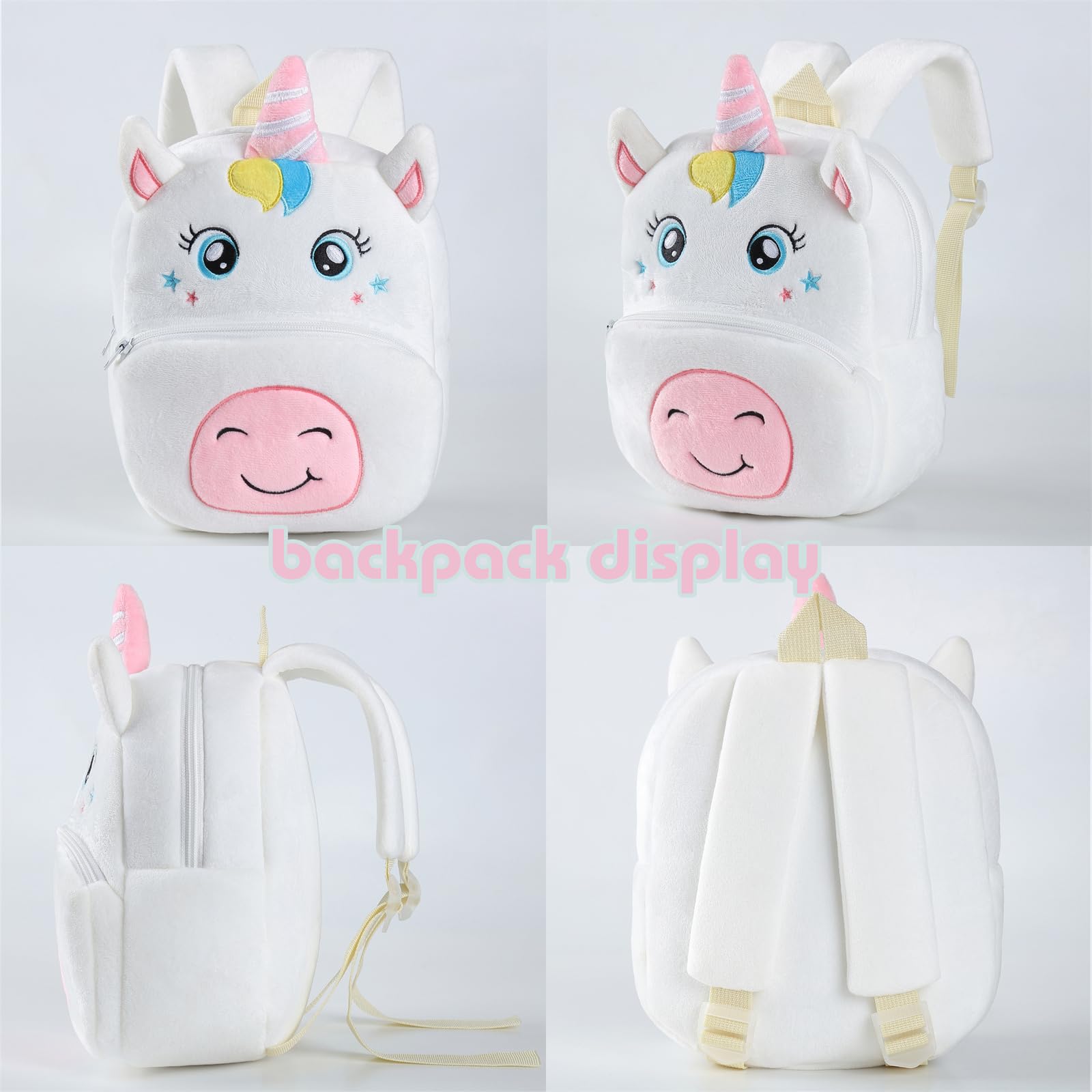 - ANIMAL MODEING: The toddler backpack is design with very cute animal shape. A variety of animal images to choose from. Smooth zipper, easy for kids to use. Double storage space. Cute and beautiful colors are more attractive to toddlers. It's effortless for them to love this mini backpack