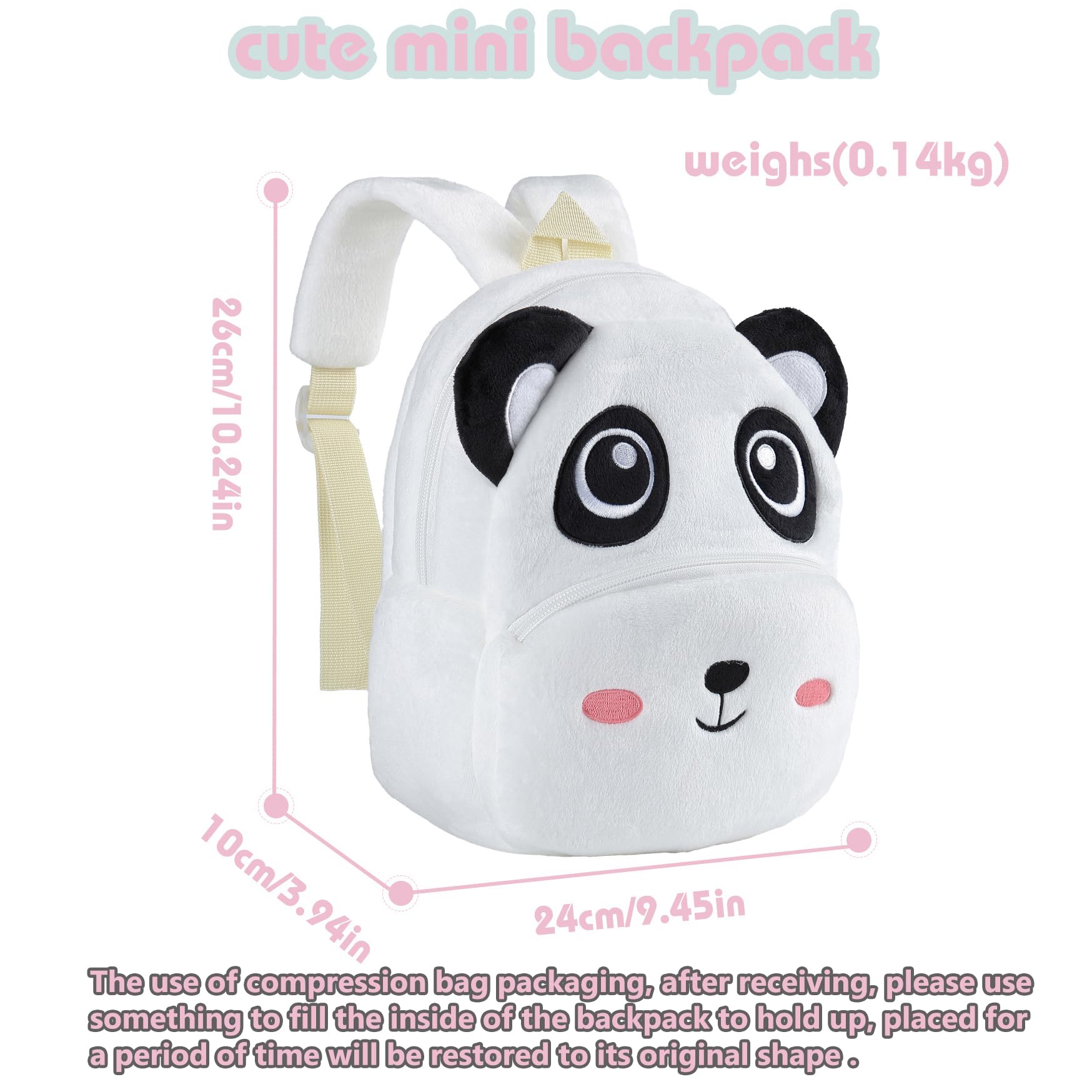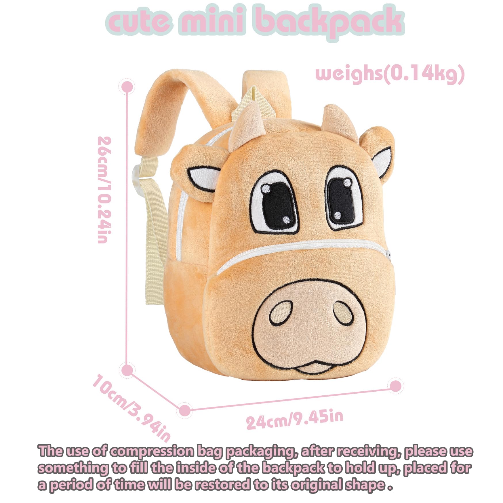 - COMPACT SIZE: Mini backpack for kids,size is height:10.24in, width:3.94in, length9.45in. Although it's a small backpack, it's perfectly fine to put some favorite small toys and snacks. Not only is it practical, but the cute styling design also adds to the child's innocence and cuteness