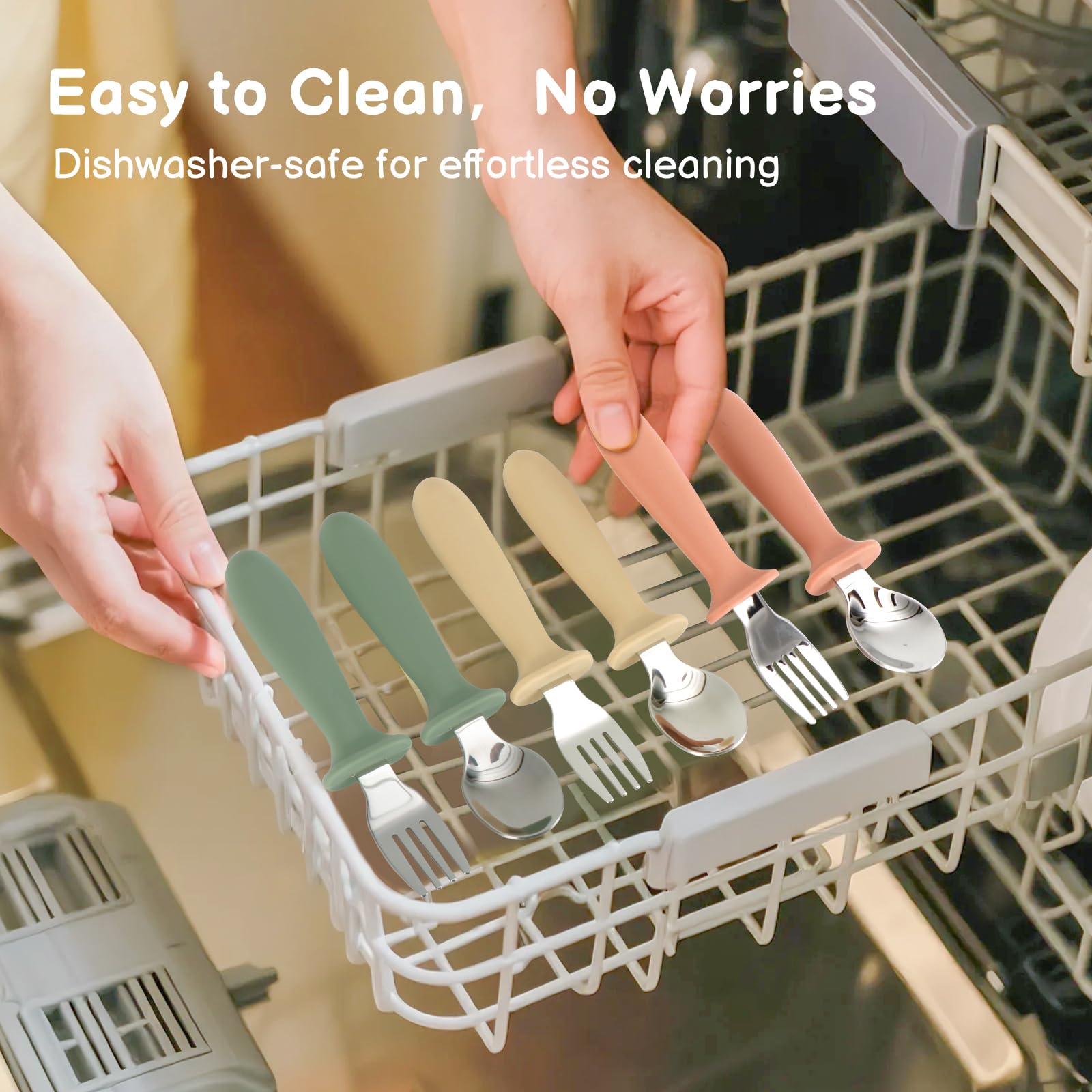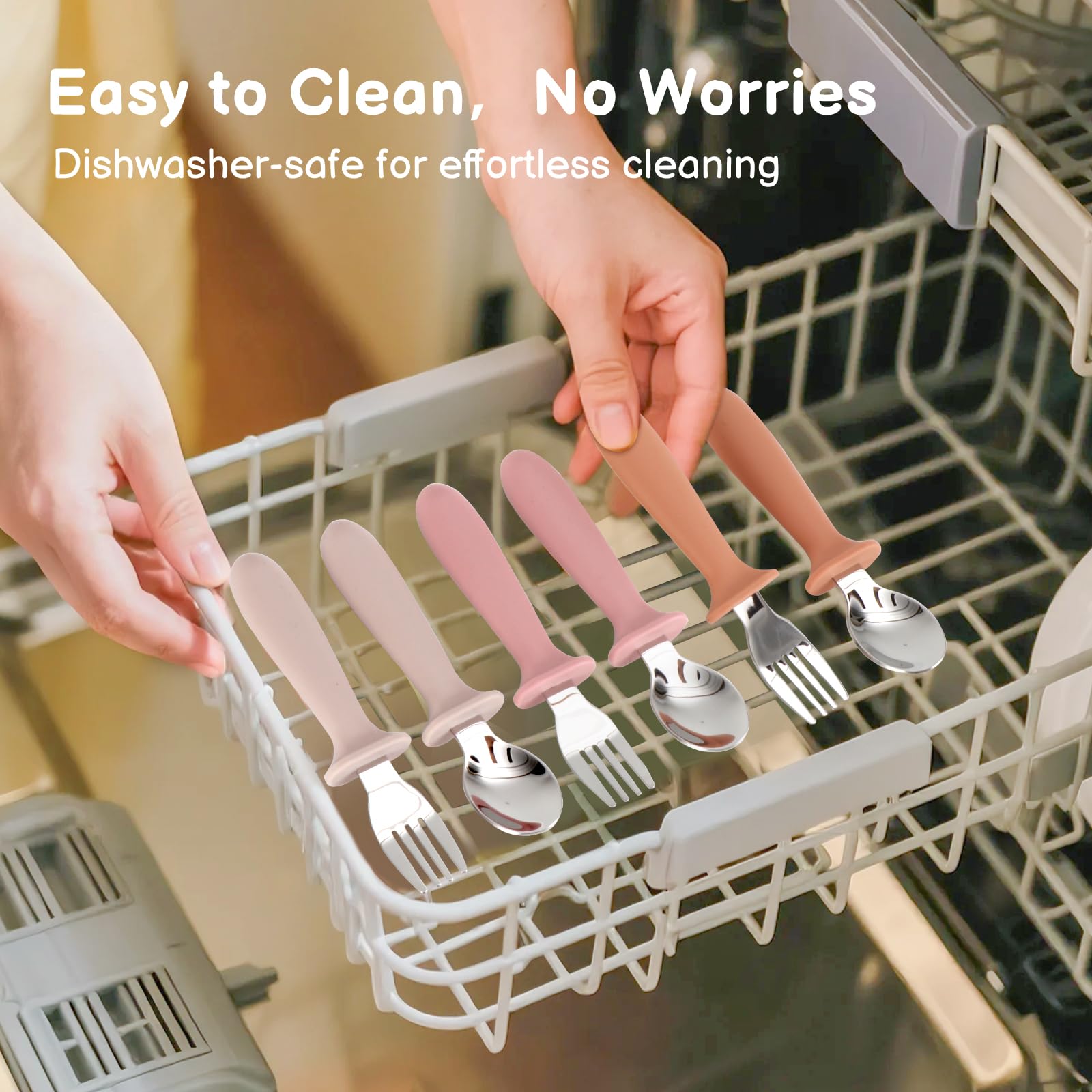 Toddler Utensils, 6 Pack kids Silverware Set with Silicone Handle, 18/8 Stainless Steel Children Safe Forks and Spoons, Dishwasher Safe