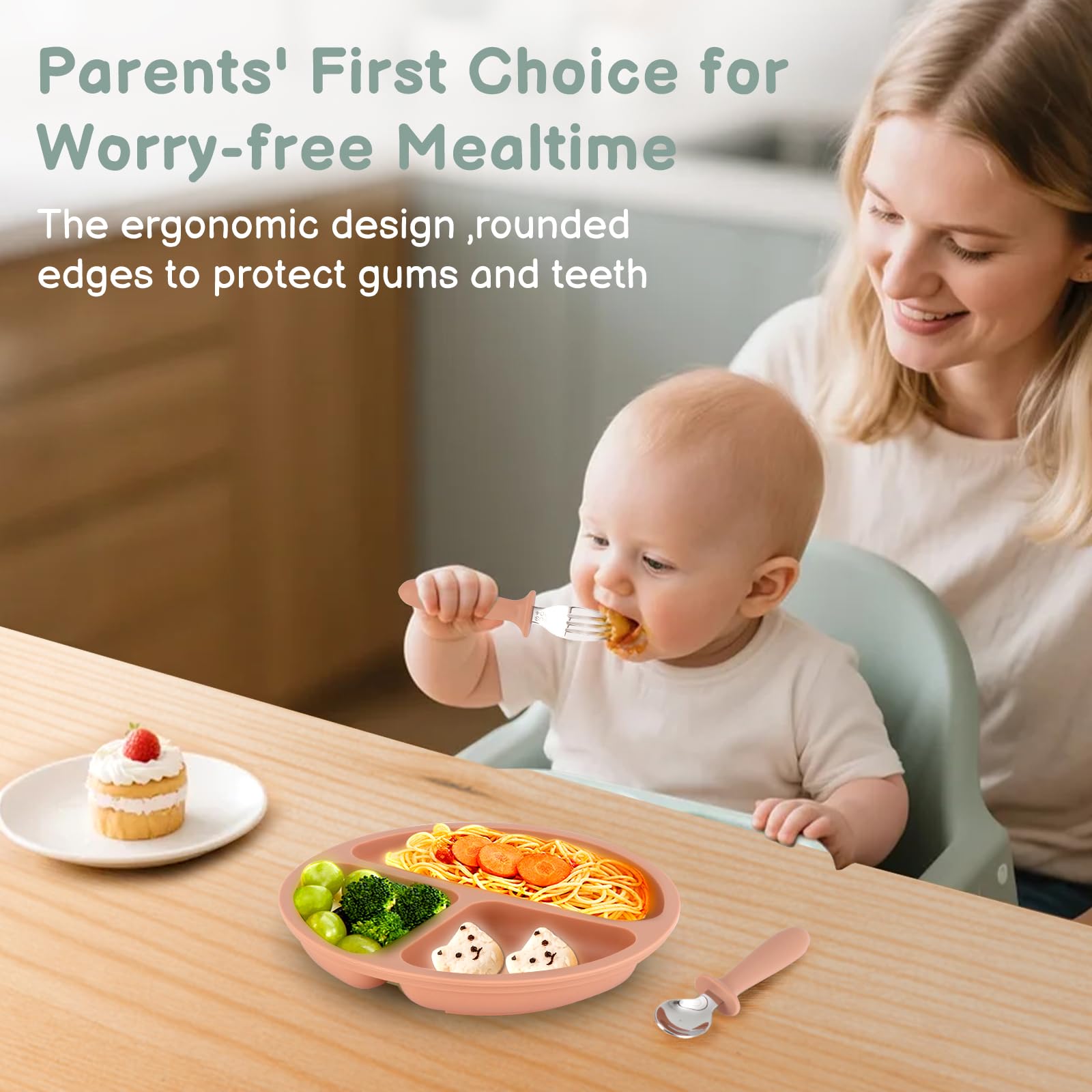 - Independent Feeding: Rounded toddler forks and spoons have no sharp edges, thick easy-to-grip silicone non-slip handles that are just the right size for your child's small hands, and the cutlery is sized to hold just the right amount of food for small mouths, making it easy for your child to feed themselves.