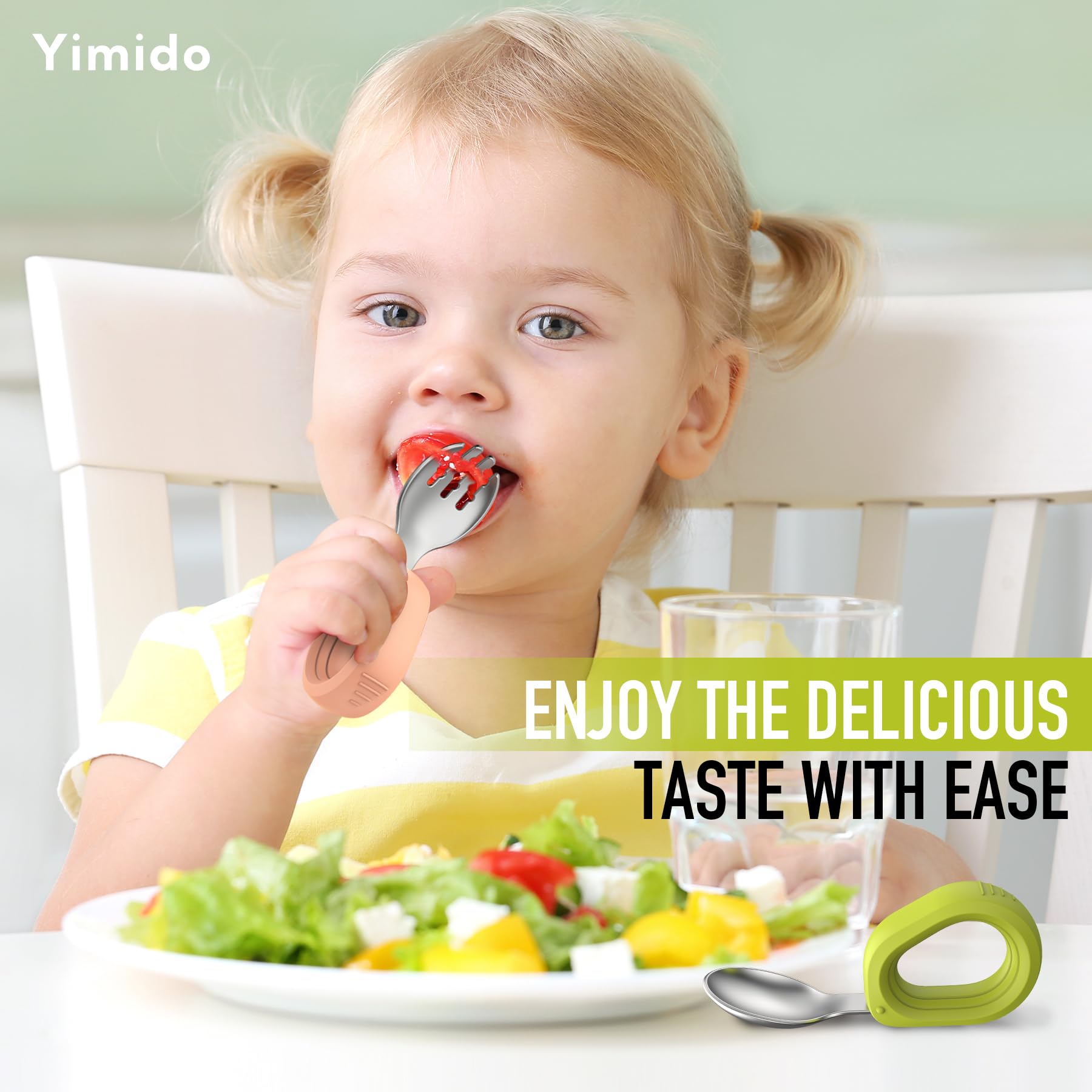 - Yimido toddler utensils feature ergonomically designed, easy-to-grip handles that help your little one guide food directly to their mouth. Whether your child is left-handed or just learning to feed themselves, Yimido kids utensils provide excellent control, making independent feeding easier.