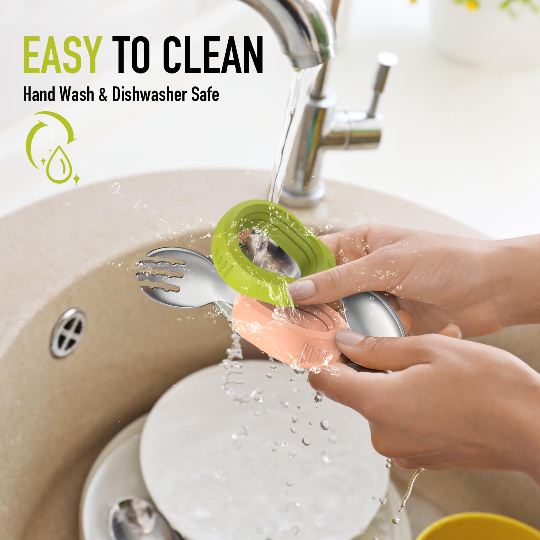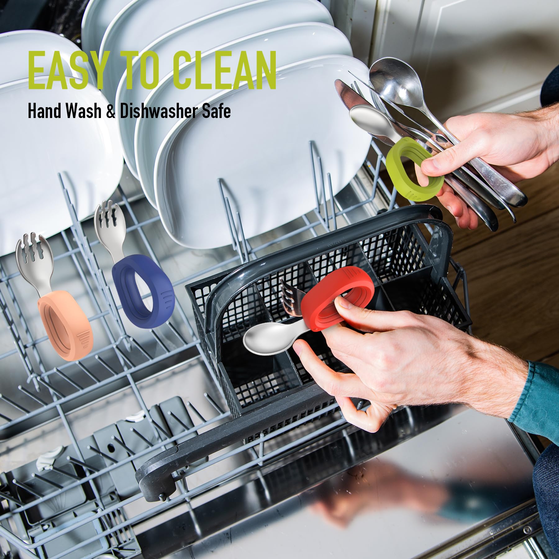 - Heat-Resistant Silicone Handles: The loop handle design ensures an easy grip, and the heat-resistant circle handles maintain their shape and quality even after multiple dishwasher cycles, making them durable and toddler-friendly.