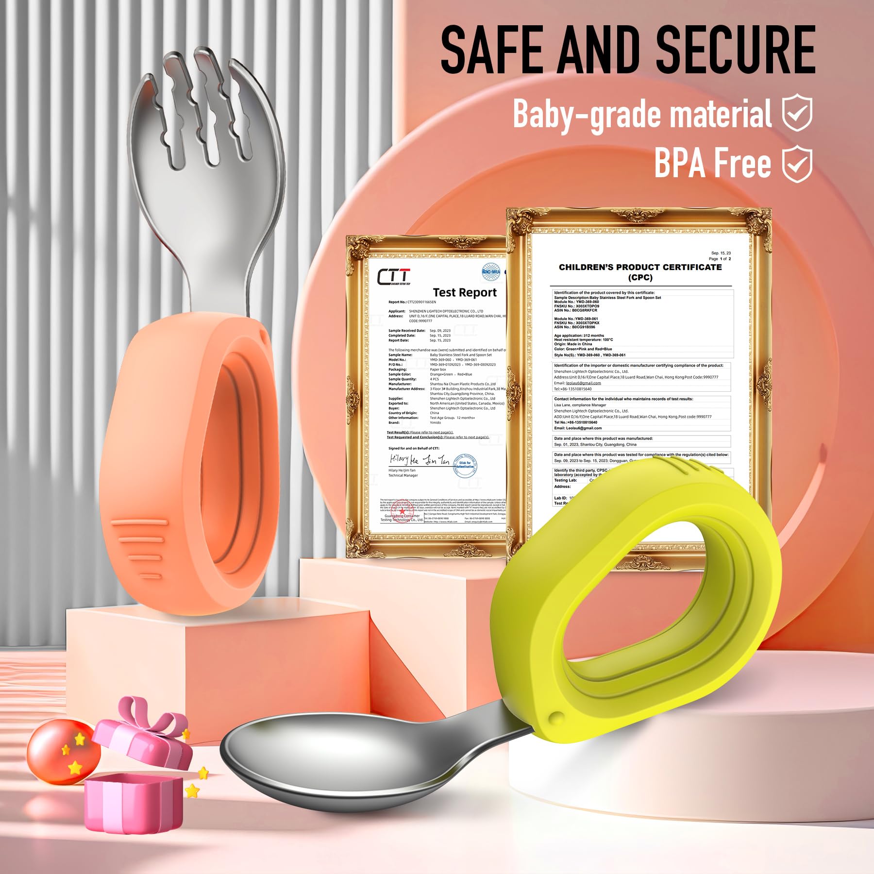 Toddler Utensils Set – Safe, Durable Stainless Steel & Silicone Baby Utensils for Self-Feeding, Smooth & Rounded for Delicate Mouths
