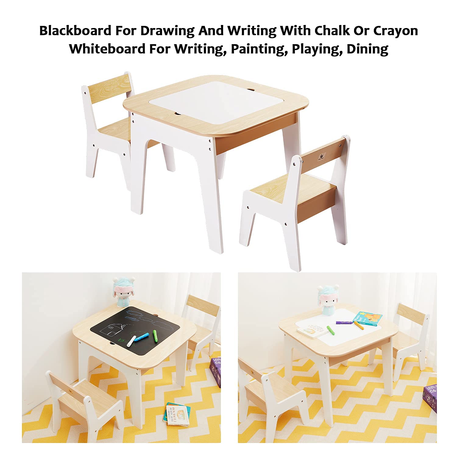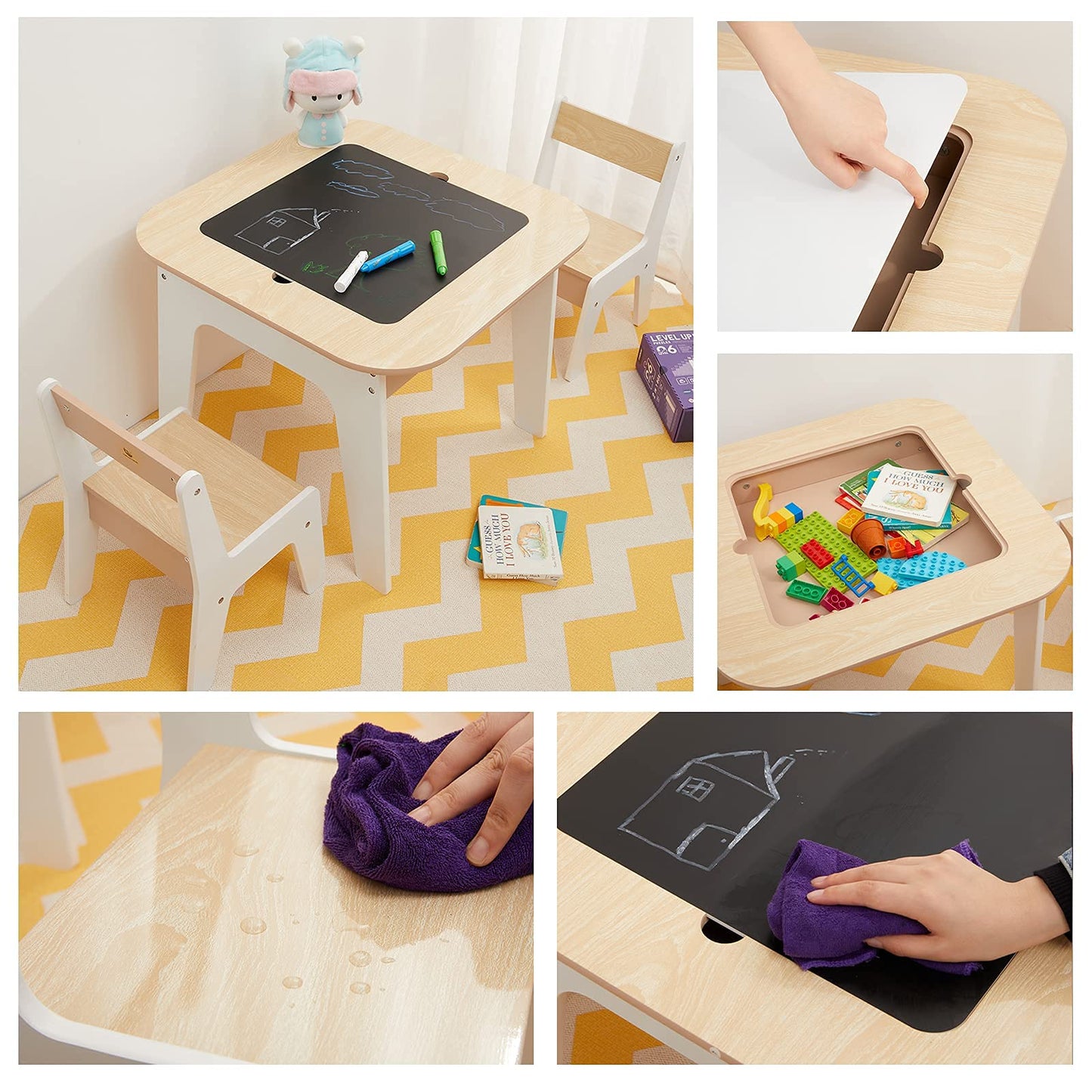 - 【𝐀𝐬 𝐒𝐭𝐨𝐫𝐚𝐠𝐞 𝐓𝐨𝐨𝐥】 - Built-in storage boxes under the tabletop and chairs, which can hold children's books, snacks, toys, etc. Perfect for saving space and keeping clean and making the clean up easily. The Wooden Storage Table and Chairs Set is a delightfully designed table and chairs set that your kids will love.