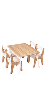 - 【𝐒𝐚𝐟𝐞𝐭𝐲&𝐃𝐮𝐫𝐚𝐛𝐥𝐞】- Made of MDF, UV Paint, environmentally friendly, non-toxic, non-odorous, Water Paint has passed ASTM standard, coupled with heat transfer printing process, compact structure design makes the product safe, durable and suitable for children to use for a long time. The Table and Chairs Set is sealed and stored in the Amazon warehouse for a long time. After the goods are received, they may have some smell. They can be used after being exposed to the sun for 2-3 days.