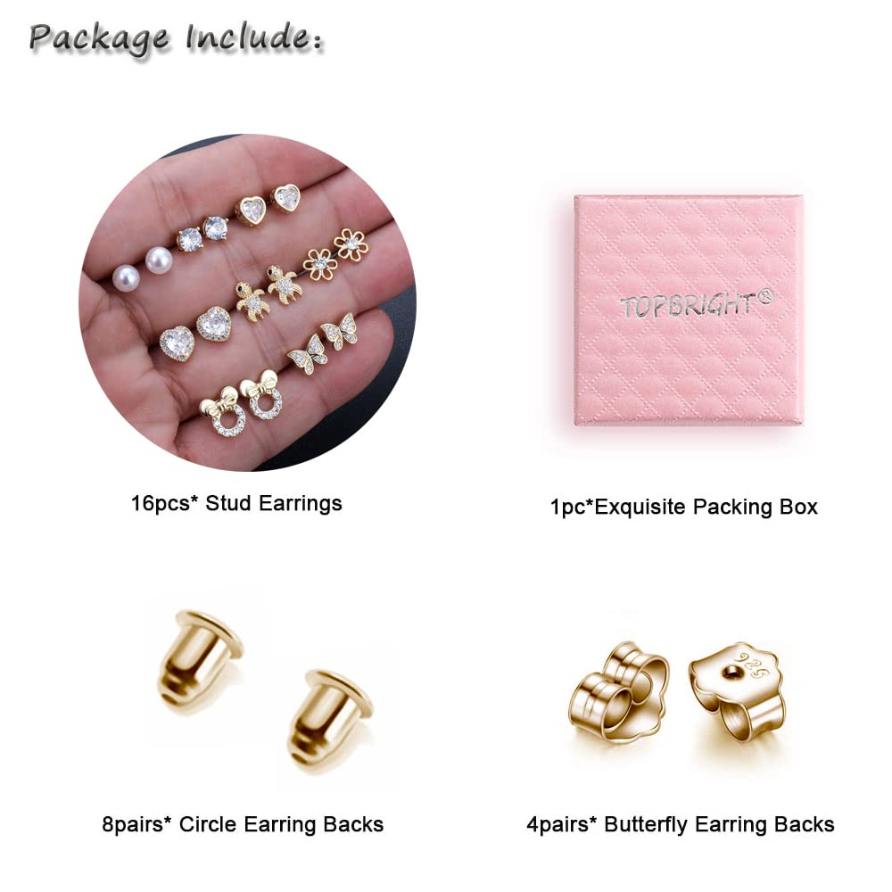 - 【❀Adorable Earrings Set】Package Inculding 8pairs(16pcs) stud earrings*1 exquisite packing box*8pairs circle earring backs*4pairs butterfly earring backs; More Choices for daily wear;