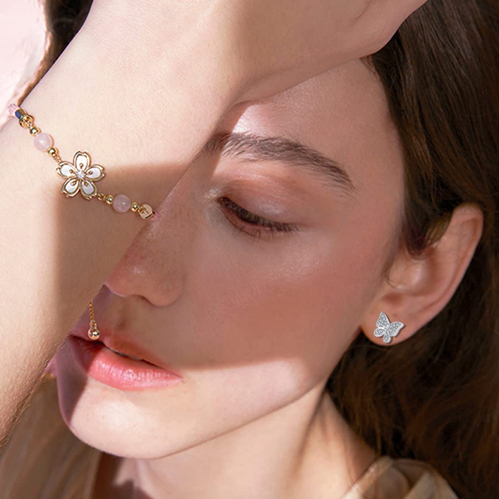 TOPBRIGHT 8 Pairs Hypoallergenic Earrings 925 Sterling Silver Stud Earrings White Heart CZ Tiny Butterfly For Kids, Toddlers, Little Girls, Teens, Women