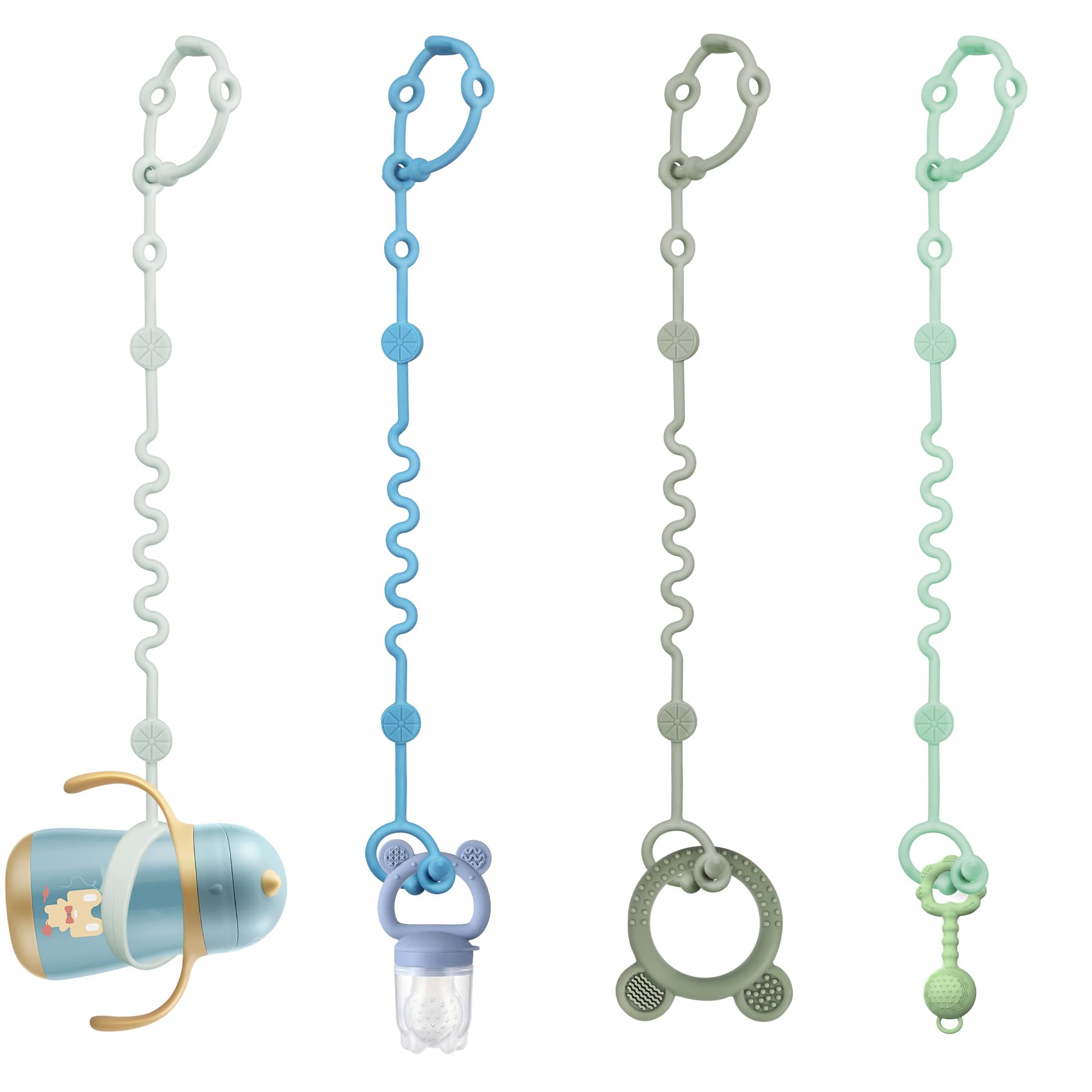 - What You Get: 4 baby toy straps and 1 bottle holder string. If our products encounter any quality issues, please reach out to us promptly, and we will provide a resolution within 24 hours during business days. Warm Tip: Please ensure disinfection by soaking in boiling water before initial use. It is popular to give baby Christmas toys during the upcoming New Year!