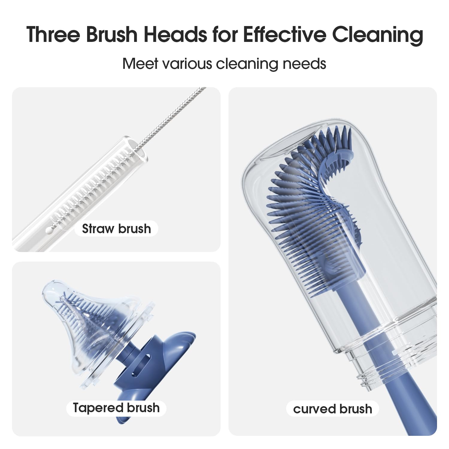 - 360° Effective Cleaning - Our curved brush head has denser bristles than the round brush heads on the market, making cleaning easier and more efficient. As your baby grows, this versatile brush head is also great for cleaning other types of water bottles and sippy cups, etc.
