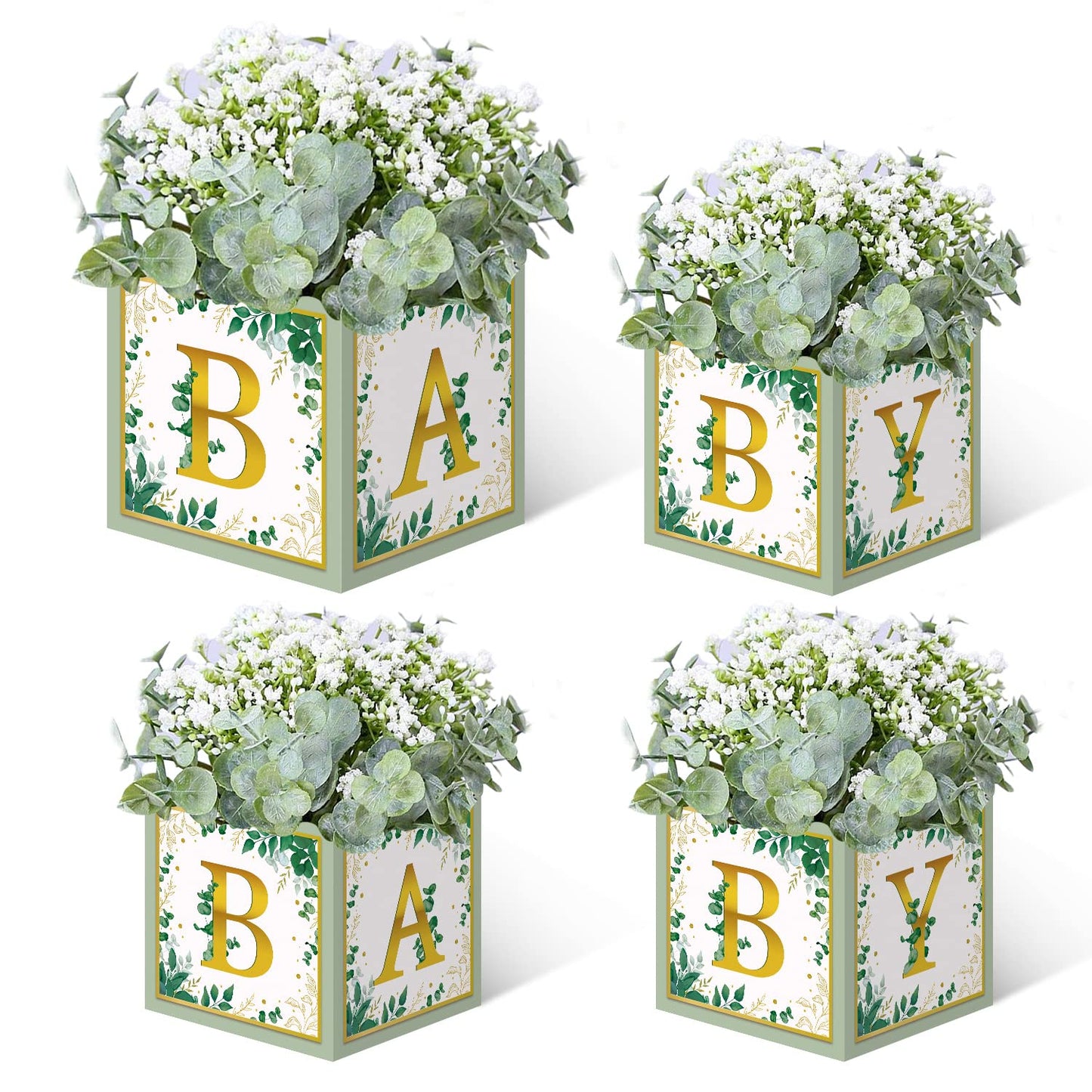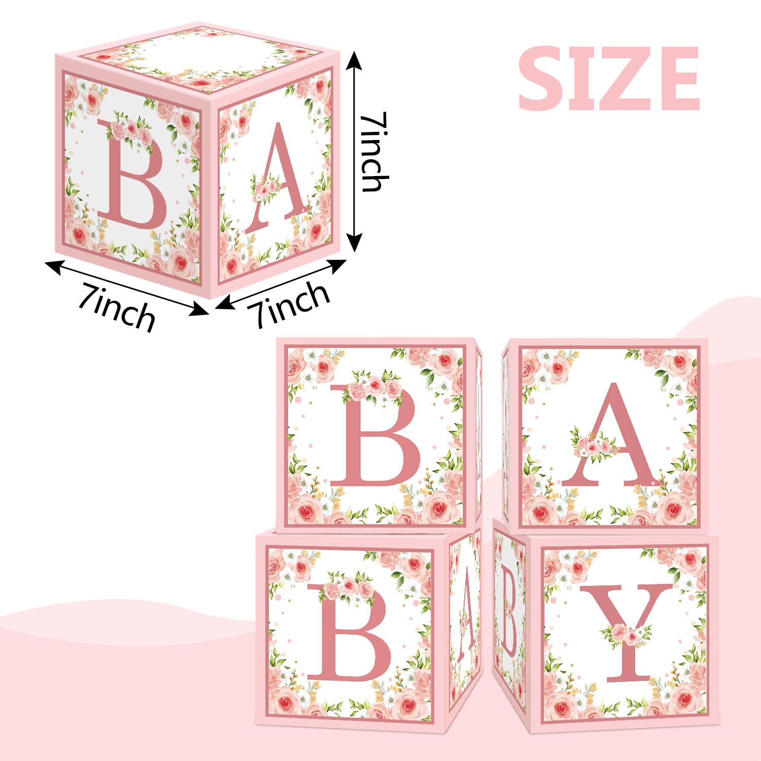 - 🌺【4 PCS Baby Shower Boxes】Package includes 4pcs paper card stock boxes(7" X 7" X 7" each ). Not including the flowers. These boxes would be a charming addition to a baby shower.Ideal for holding flowers for your baby shower table or candy buffet.