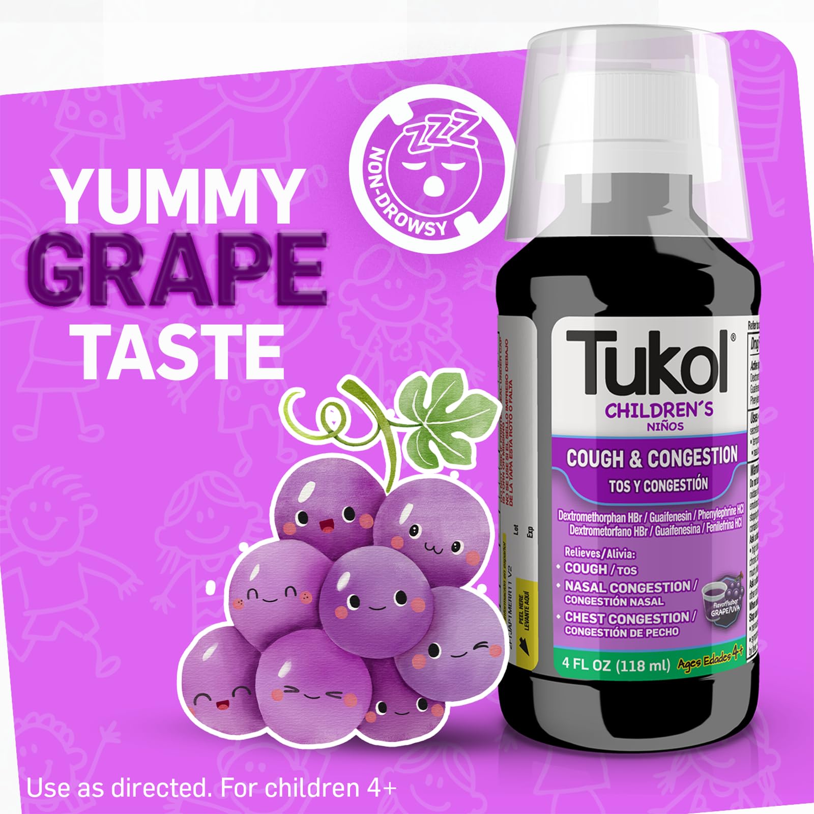 TUKOL Children's Cold & Flu Kids Cold and Flu Medicine, Children's Cough and Cold Medicine, Multi-Symptom Relief for Fever, Aches, Nasal Congestion, Berry-Flavored, 4 fl oz