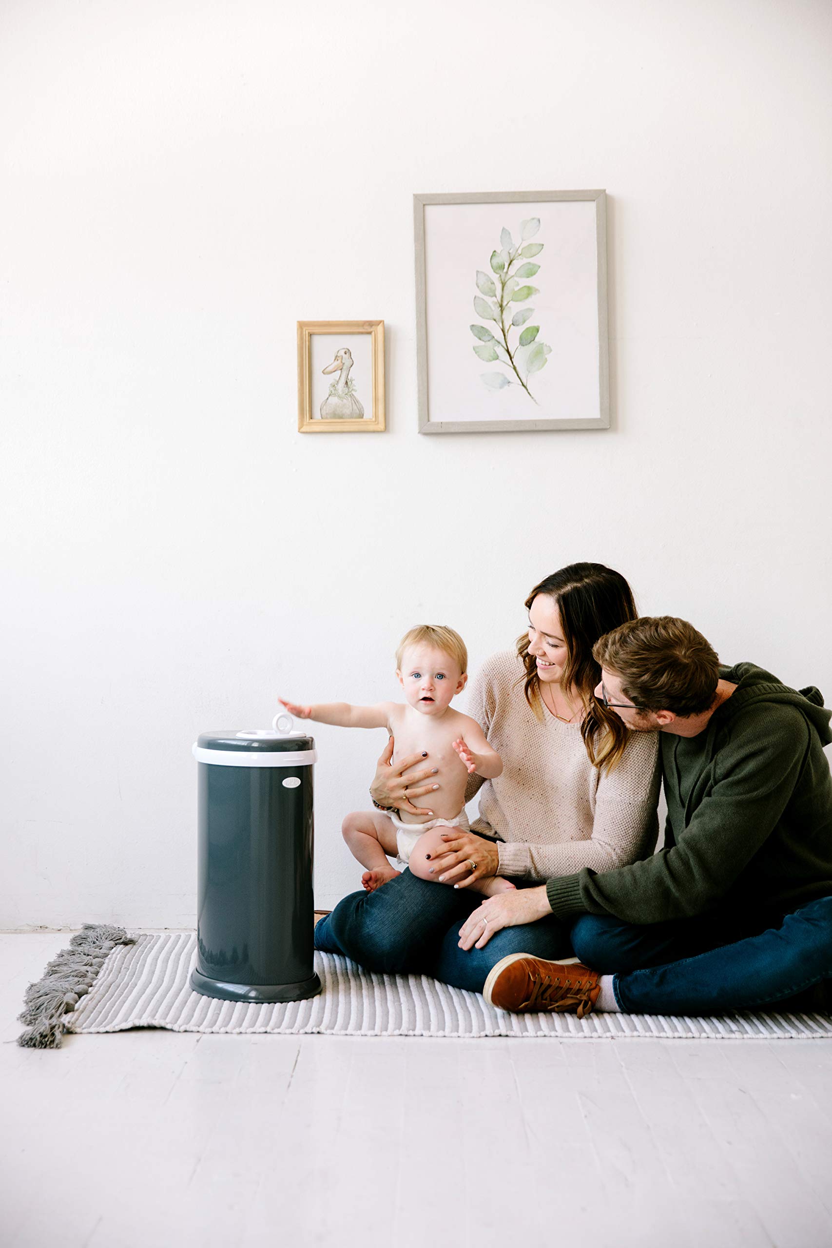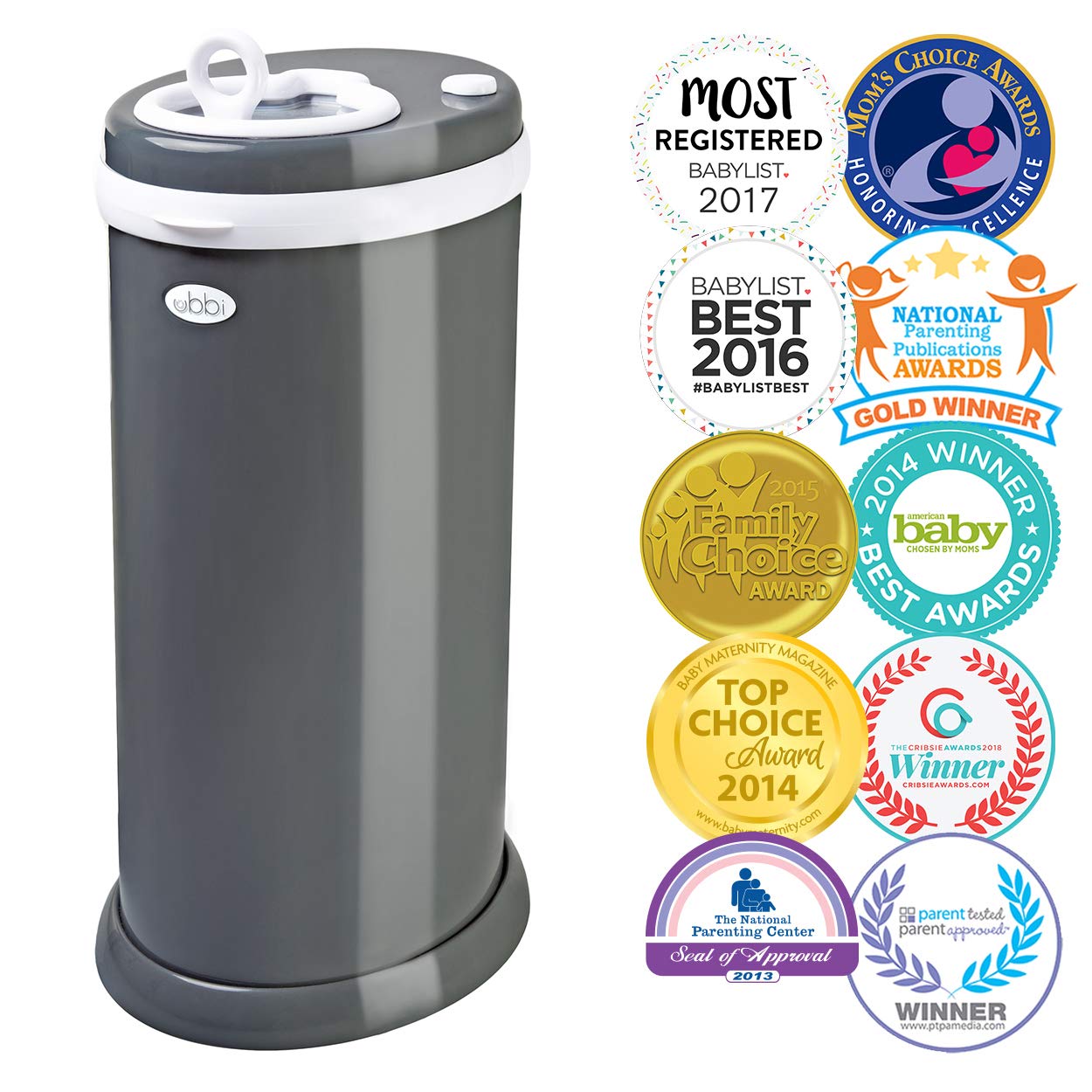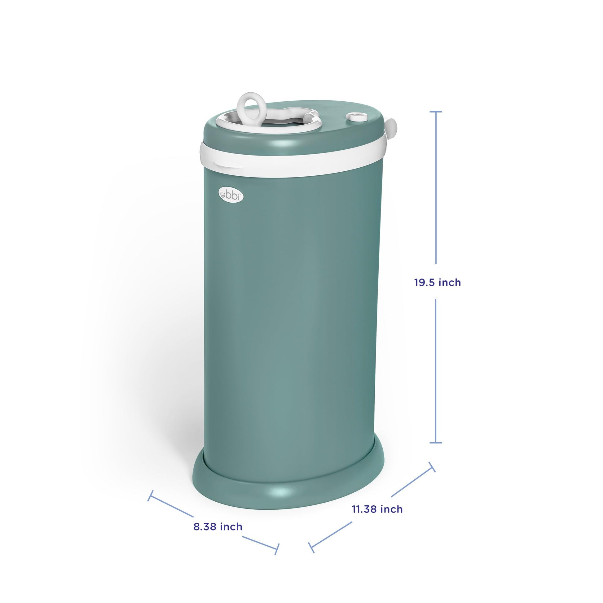 The award-winning Ubbi Diaper Pail has earned worldwide recognition for its superior odor control and convenience, representing a breakthrough in the diaper disposal market. The Ubbi Steel Diaper Pail is crafted from powder-coated steel and provides maximum odor control. It’s rubber seals are strategically placed to lock in odors, and the innovative sliding lid minimizes air disruption, ensuring that unpleasant smells remain contained within the pail. The optional childproof lock keeps little hands out. Catering to the needs of modern parents, our baby diaper pail is compatible with any standard trash bags saving parents money and time. Strategically designed to be the easiest disposal system to load, use, empty, and clean. Enter the world of Ubbi where innovative products are designed and created with parents and children in mind. A wide range of Ubbi branded products is now available for today’s modern parents that are looking for stylish and functional baby essentials. Do not clean with any harsh abrasives or liquids - even water! Wipe clean with a dry cloth to prevent rust. No special bags needed. Dimensions: 19.5” H x 8.4” W x 11.4” D. Opening Size: 5 inches diameter. Holds up to 55 newborn sized diapers.