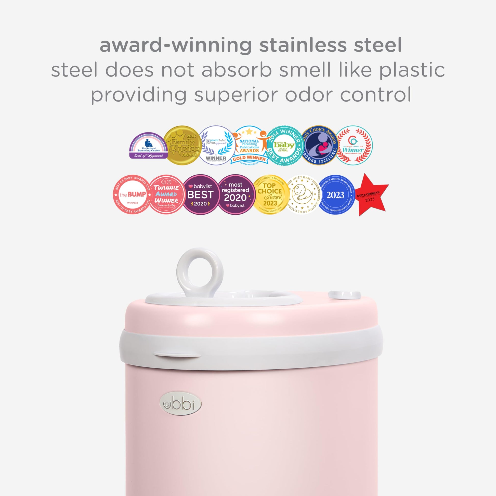 - POWDER-COATED STEEL: The Ubbi Diaper Pail is made of powder-coated steel, which provides superior odor control compared to other materials. This high-quality steel and rubber seal design ensures that unpleasant smells are contained within the pail, keeping your nursery smelling fresh and clean.