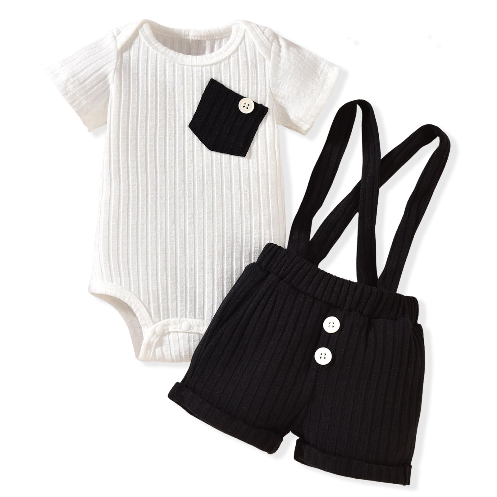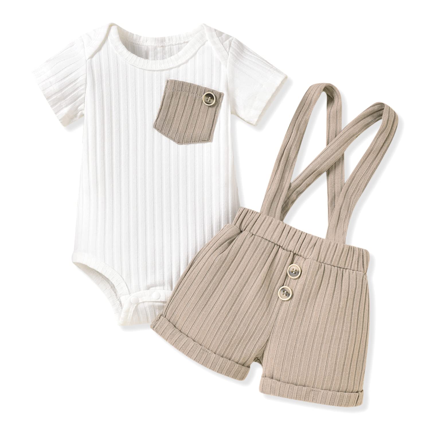 Unutiylo Baby Boy Outfits 0-12 Months Short Sleeve Romper Suspenders Pants Spring Summer clothes