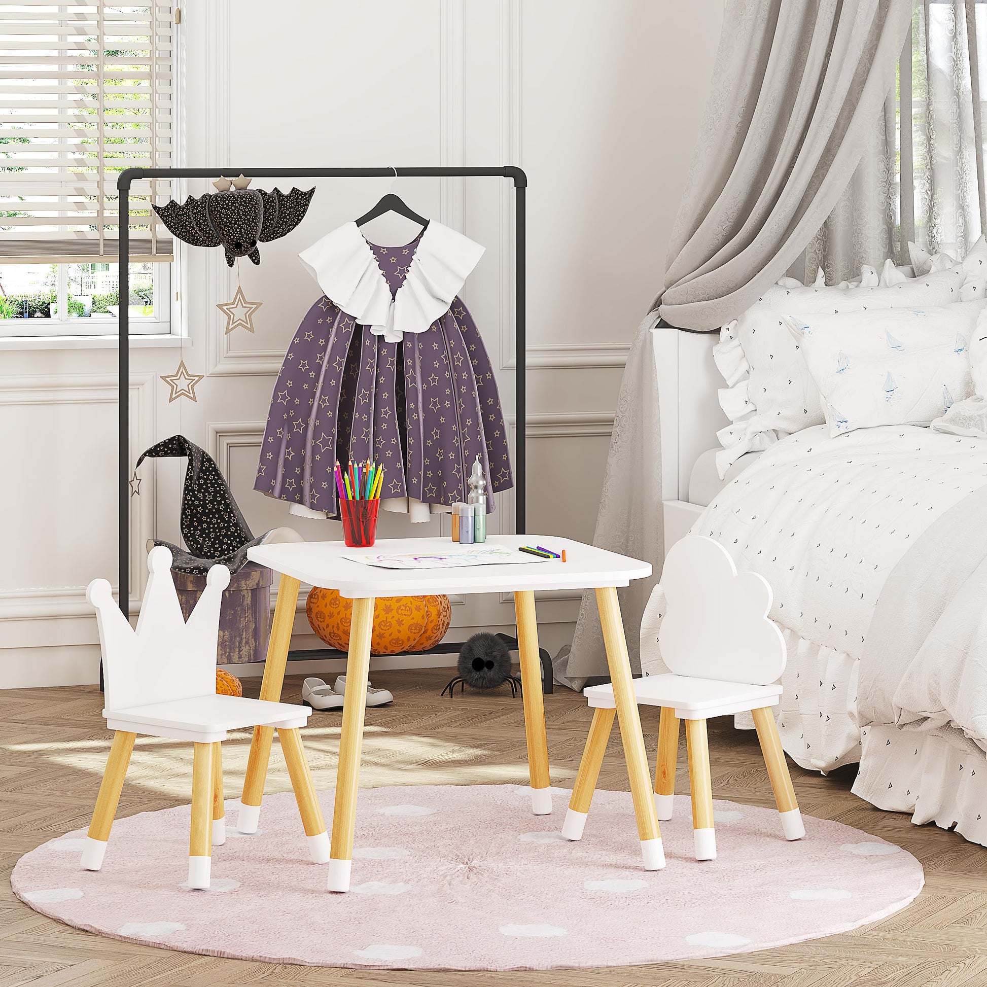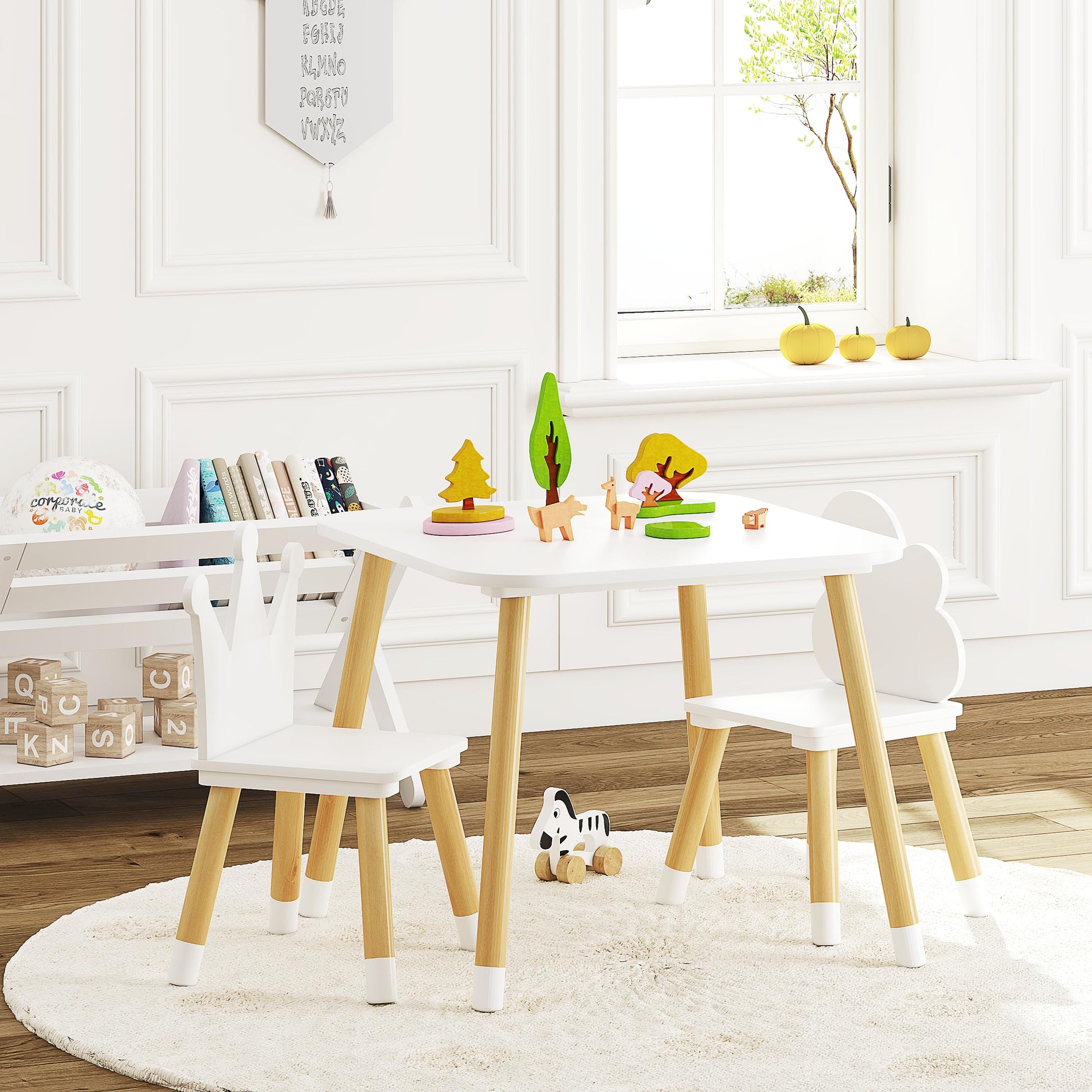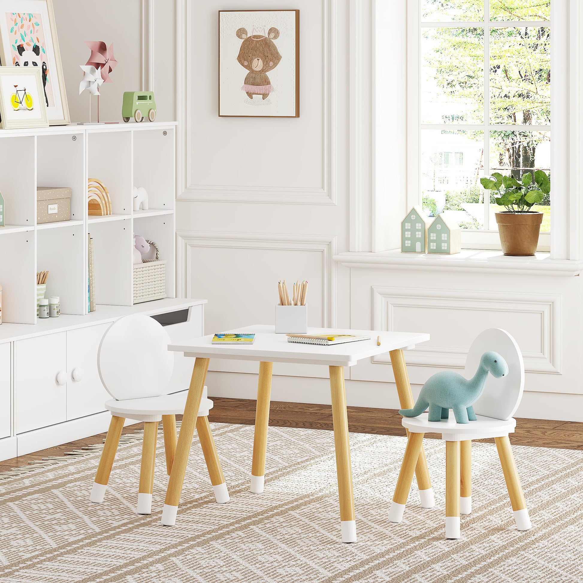 - Quality children's tables: Kids table and chairs made of high-quality pine and artificial wood, strong and durable, anti-corrosion and moisture; white painted table and chairs with smooth and wear-resistant surface, will not cause any damage to the children.