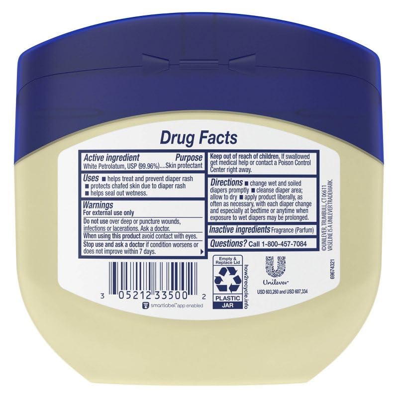 - VASELINE PETROLEUM JELLY FOR BABY: Our Healing Jelly for babies contains triple-purified petroleum jelly with a soothing light baby powder scent.