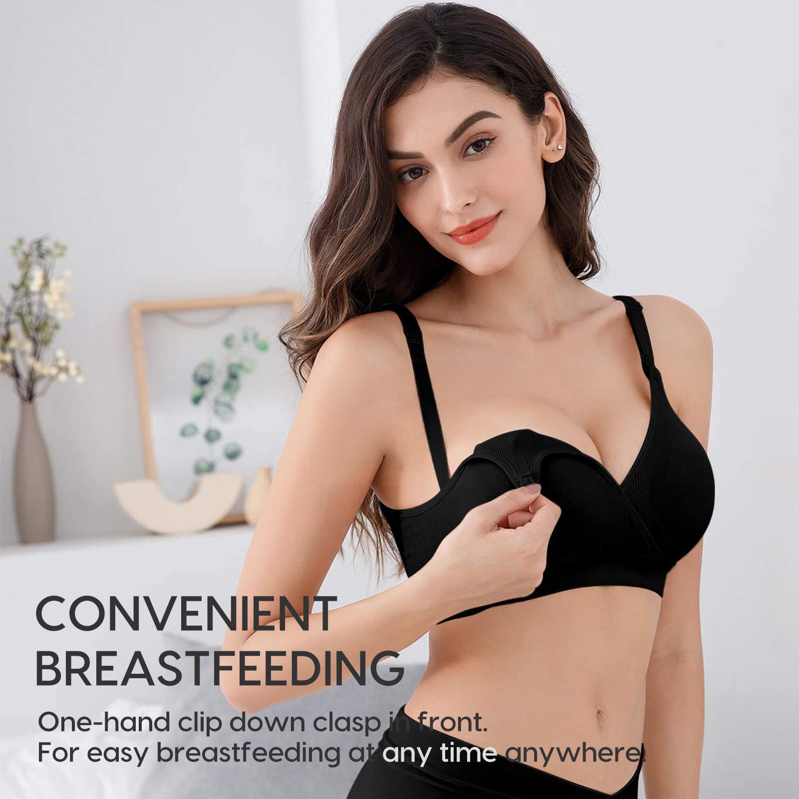 Vinfact 3 Pack Nursing Bras for Breastfeeding Seamless V Neck Maternity Bra Women Pregnancy Breastfeeding Bra